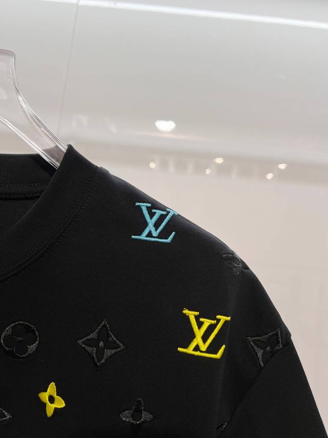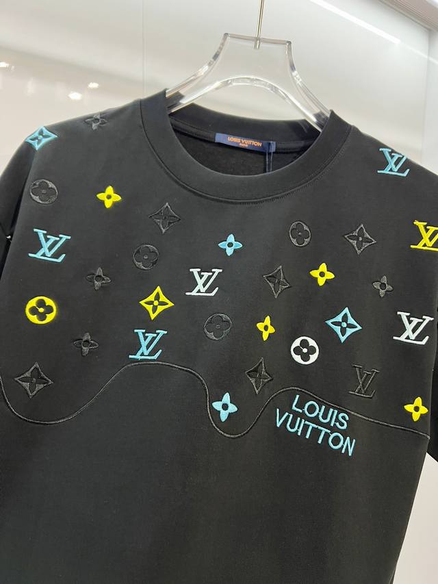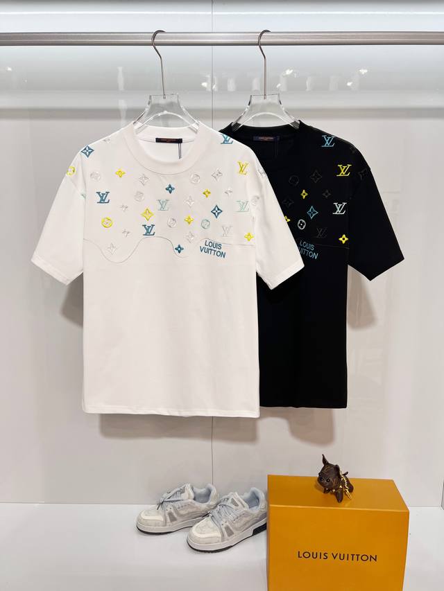 Louis Vuitton High-Quality 320g Crew Neck Short Sleeve T-Shirt. Brand Classic 1V, Louis Vuitton Wave Pattern Color Block Monogram Embroidered Logo. 2026 Spring/Summer Official Synchronized High-Quality Version. Fashionable, Versatile, Trendy. Original Quality Fabric. Complete with Hangtag, Neck Label, Washing Label, and Three Tags. Colors: Black, White. Sizes: S, M, L, XL.