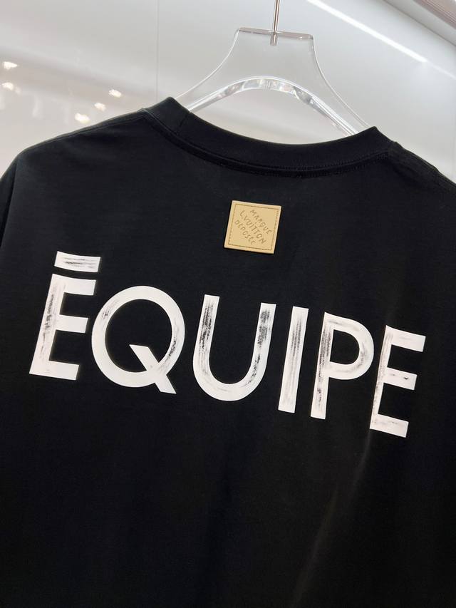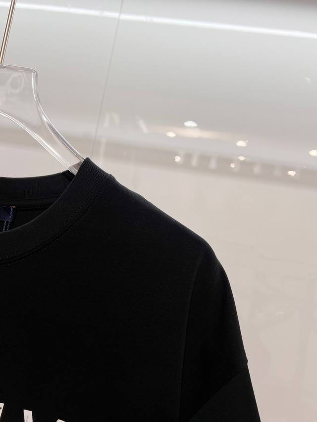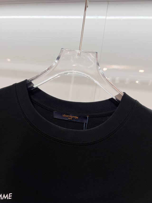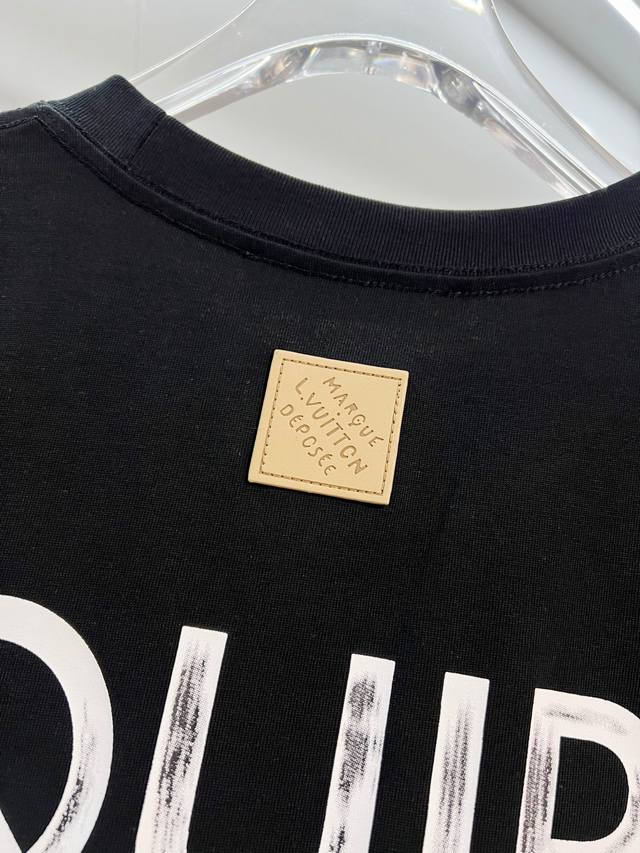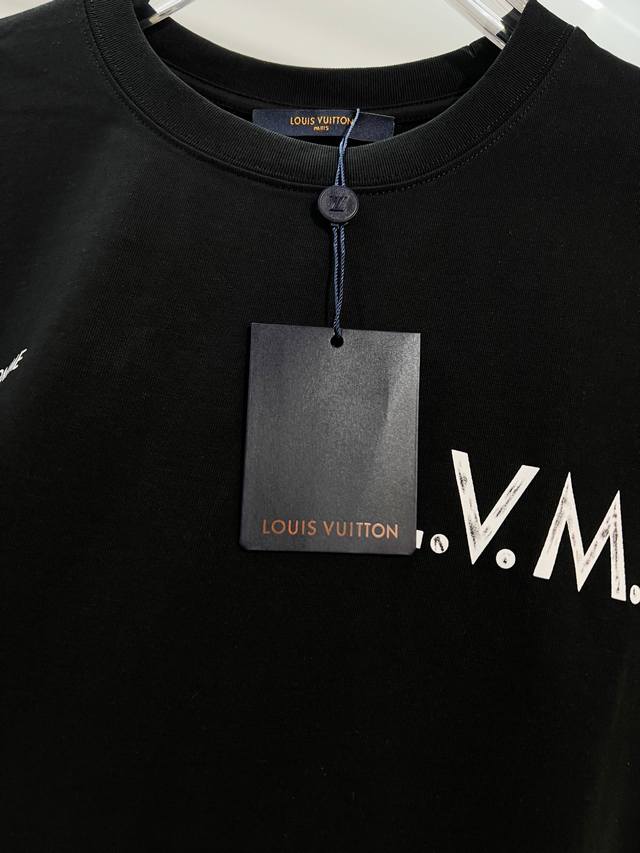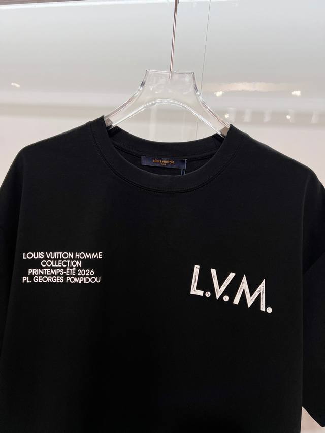 Louis Vuitton High-Quality 320g Crew Neck Short Sleeve T-Shirt. Brand classic 1V design, distressed print slogan lettering logo, embossed finish. 2026 Spring/Summer official version, high quality. Stylish, versatile, trendy. Original quality fabric. Complete with hangtag, neck label, and wash label. Colors: Black, White. Sizes: S, M, L, XL.