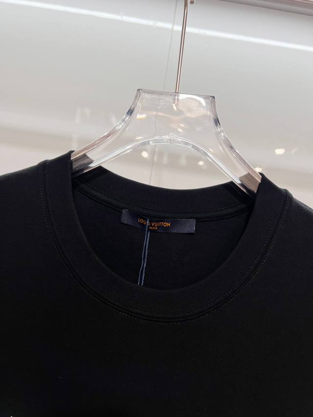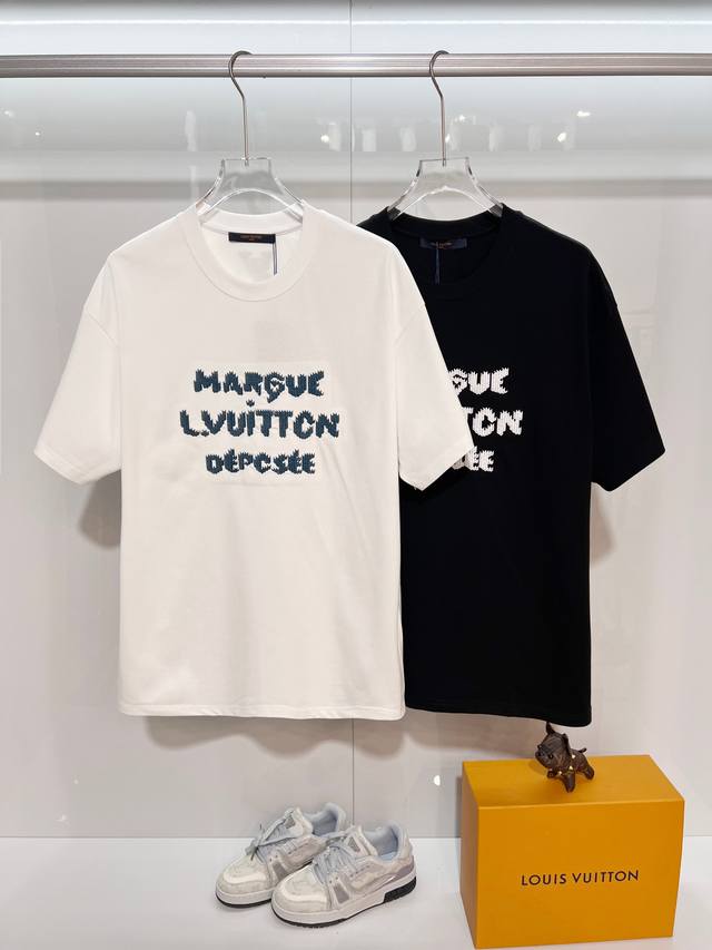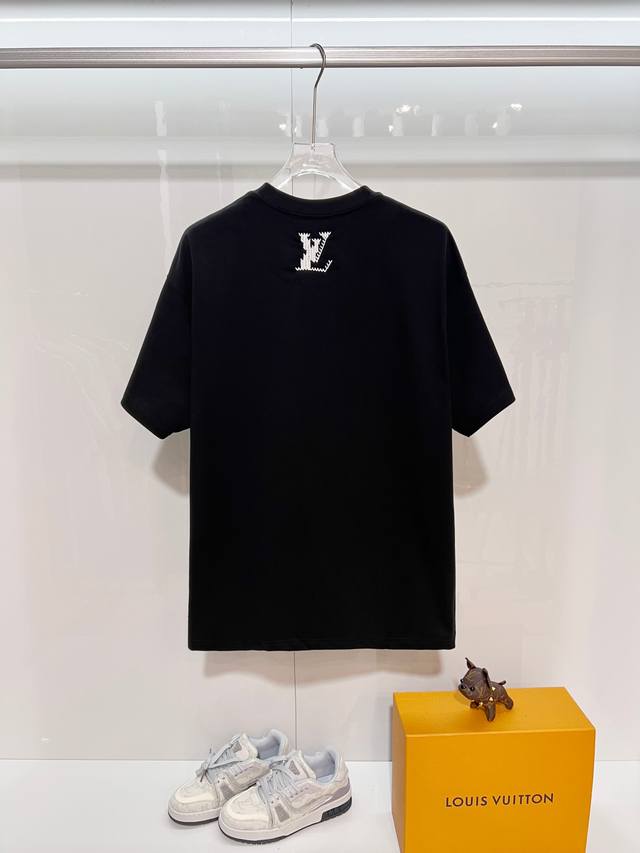 Louis Vuitton High-Quality 320g Crew Neck Short Sleeve T-Shirt. Brand Classic 1V. Features the iconic Louis Vuitton logo with thousands of stitches on the chest. Officially synchronized with the 2025 SS collection. High-quality, fashionable, versatile, and trendy. Made with original fabric and tags. Includes hangtags, neck labels, and wash labels. Colors: Black, White. Sizes: S, M, L, XL.