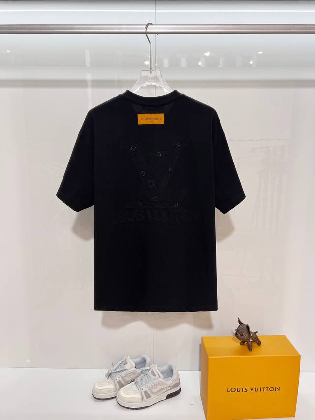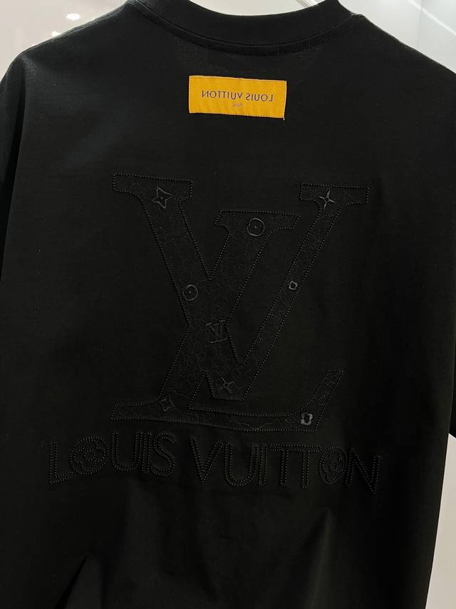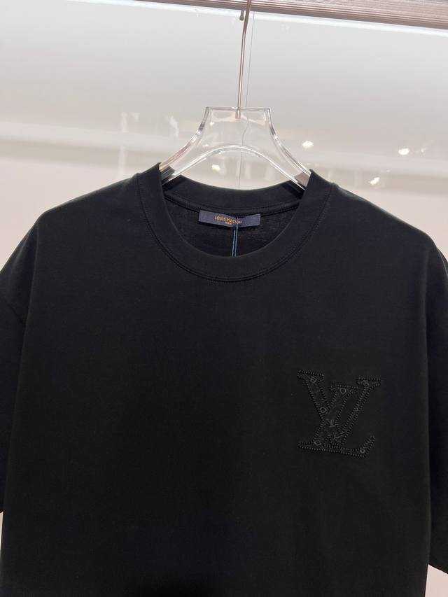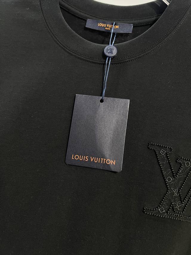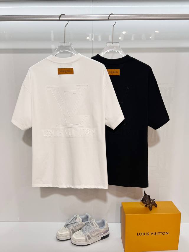 Louis Vuitton High-Quality 320g Crew Neck Short Sleeve T-Shirt. Features the brand's classic 3D embroidered logo and monogram elements on the front and back. Officially synchronized high-quality version for 2025 SS. Stylish, versatile, and trendy. Made with original quality fabric. Includes hangtags, neck labels, and wash labels. Colors: Black, White. Sizes: S, M, L, XL.