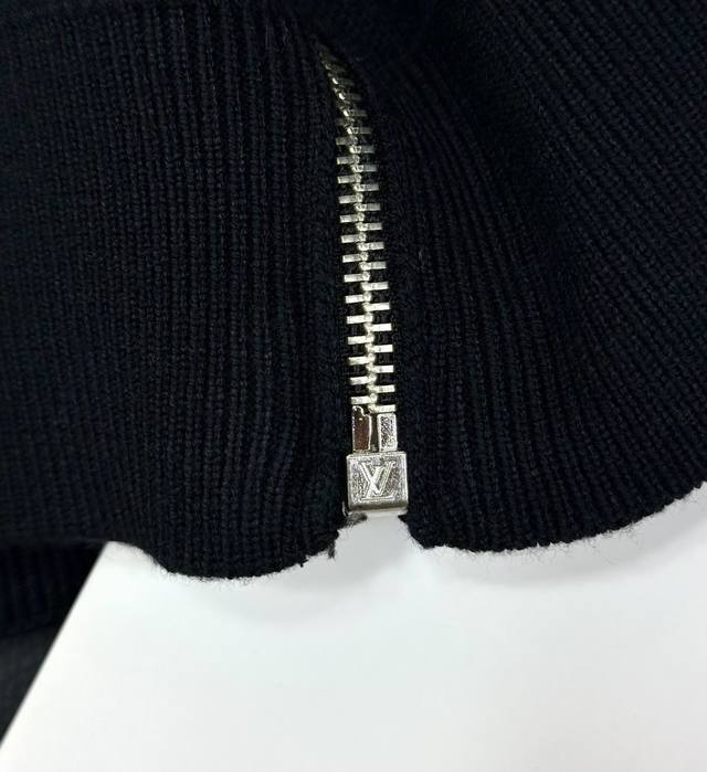 Louis Vuitton Leather Label Knitted Wool Zip-Up Cardigan. Made of soft, comfortable, and breathable sheep's wool fabric, this cardigan features trimmed pockets, a logo metal rivet tag at the back, a knitted shirt collar, ribbed cuffs and hem, a logo zip-up front with a white brass plated finish, and a laser-cut brand logo. It pairs well with various garments for a stylish look. Custom accessories included, all three labels are present, and it's unisex! Material: Wool; Fit: Loose; Color: Black; Sizes: S, M, L, XL.