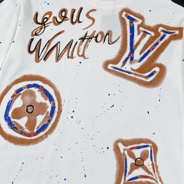 Louis Vuitton Lv 2025 Summer New Dopamine Colorful Graffiti Logo Print Short Sleeve Round Neck T-shirt