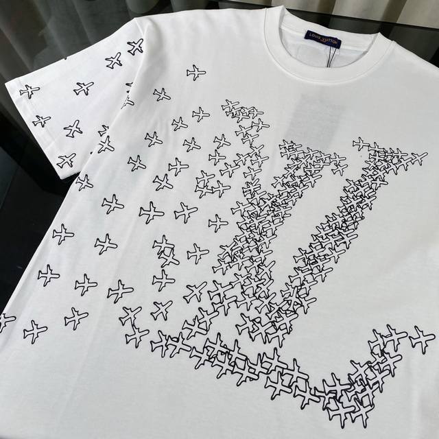 Louis Vuitton Lv 2025 summer new style small airplane logo printed short-sleeved round neck T-shirt