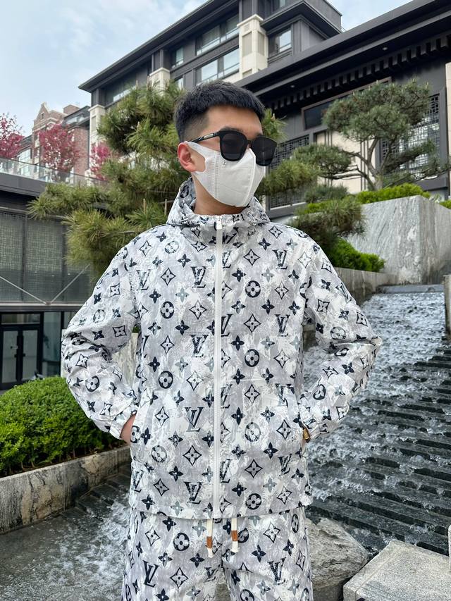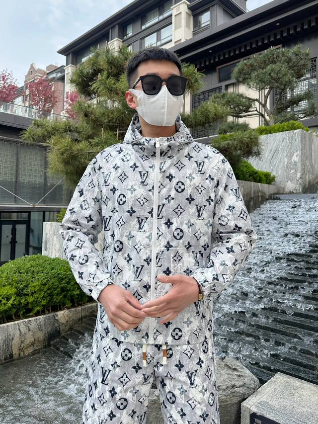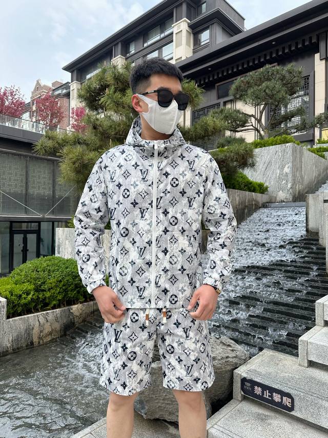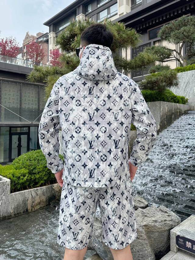 Louis Vuitton LV 2025 Summer Sun Protection Shirt and Shorts Set, a luxurious haute couture piece that's easy for anyone to wear, made with imported polyester fabric that's soft, comfortable, stylish, sweat-wicking, and breathable. Ordered from a foreign trade company, produced by a top-tier domestic factory, featuring custom-made high-density fabric that won't deform after washing. Luxurious and youthful, a must-have for street style and everyday wear. Sizes: M to XL. Please provide your height and weight when ordering.