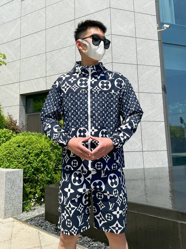 Louis Vuitton LV 2025 Summer Sun Protection Shirt and Shorts Set, a luxurious haute couture piece that's easy for anyone to wear, made with imported polyester fabric that's soft, comfortable, stylish, sweat-wicking, and breathable. Ordered from a foreign trade company, produced by a top-tier domestic factory, featuring custom-made high-density fabric that won't deform after washing. Luxurious and youthful, a must-have for street style and everyday wear. Sizes: M to XL. Please provide your height and weight when ordering.