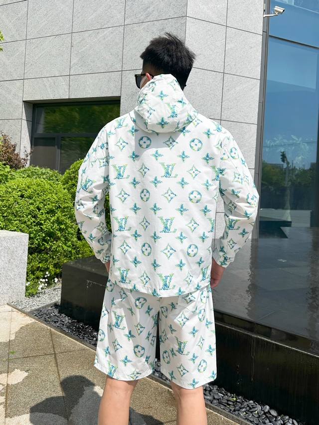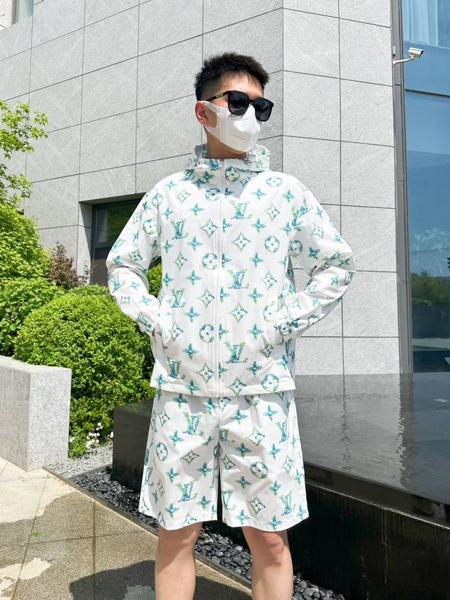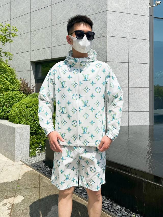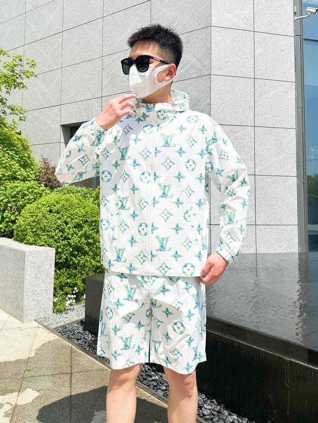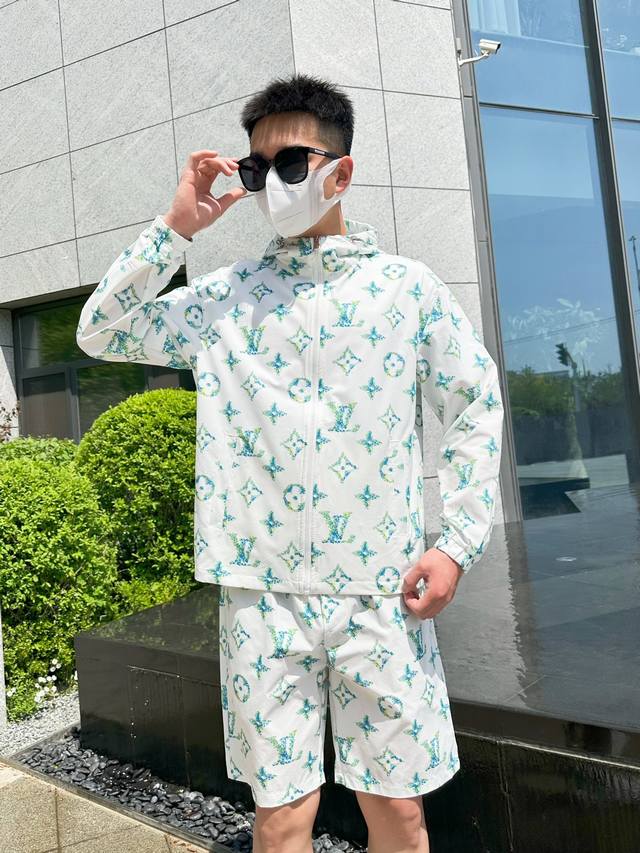Louis Vuitton LV 2025 Summer Sun Protection Shirt and Shorts Set. A luxurious haute couture piece, identical to those found in overseas boutiques. Easily wearable for anyone. Made with imported polyester fabric, soft, comfortable, stylish, sweat-wicking, and breathable. Ordered from a foreign trade company, produced by a top-tier domestic factory. Custom-made high-density fabric, waterproof and shape-retaining. Luxurious and youthful, a must-have for street style and everyday wear. Sizes: M to XL. Please provide your height and weight when ordering.