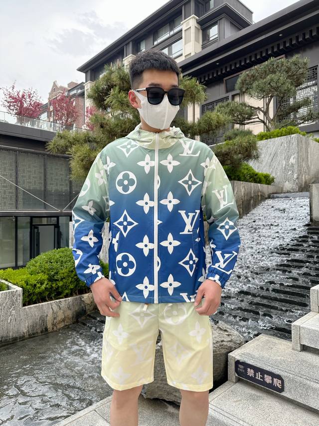 Louis Vuitton LV 2025 Summer Sun Protection Shirt and Shorts Set. A luxurious, high-end custom-made set, identical to those in overseas boutiques. Easily wearable for anyone. Made with imported polyester fabric, soft, comfortable, stylish, sweat-wicking, and breathable. Ordered from a foreign trade company, produced by a top-tier domestic factory. Custom-made high-density fabric, waterproof and shape-retaining. Luxurious and youthful, a must-have for street style and everyday wear. Sizes: M to XL. Please provide your height and weight when ordering.
