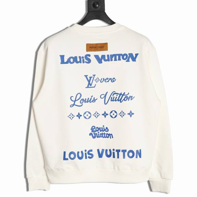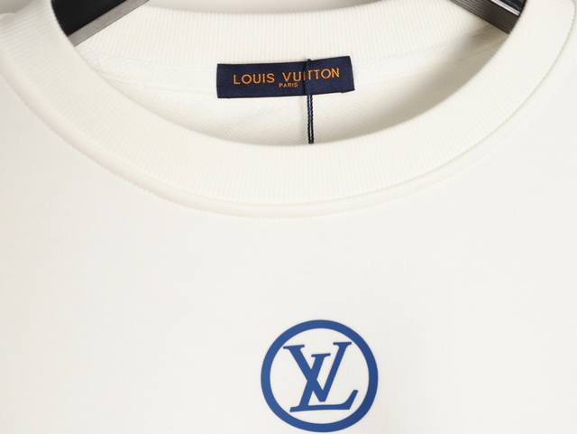 Louis Vuitton Lv 25Fw Silicone Round Label Crew Neck Sweatshirt (Ddd) 480G High-Grade Combed Cotton Fabric, Boutique Label, Authentic White Thick Hang Tag, Front and Back 3D Foamed Print with Strong Layering, Unisex, Couple Style, Oversized Fit (Ddd) Sizes: S-XL (DDD)