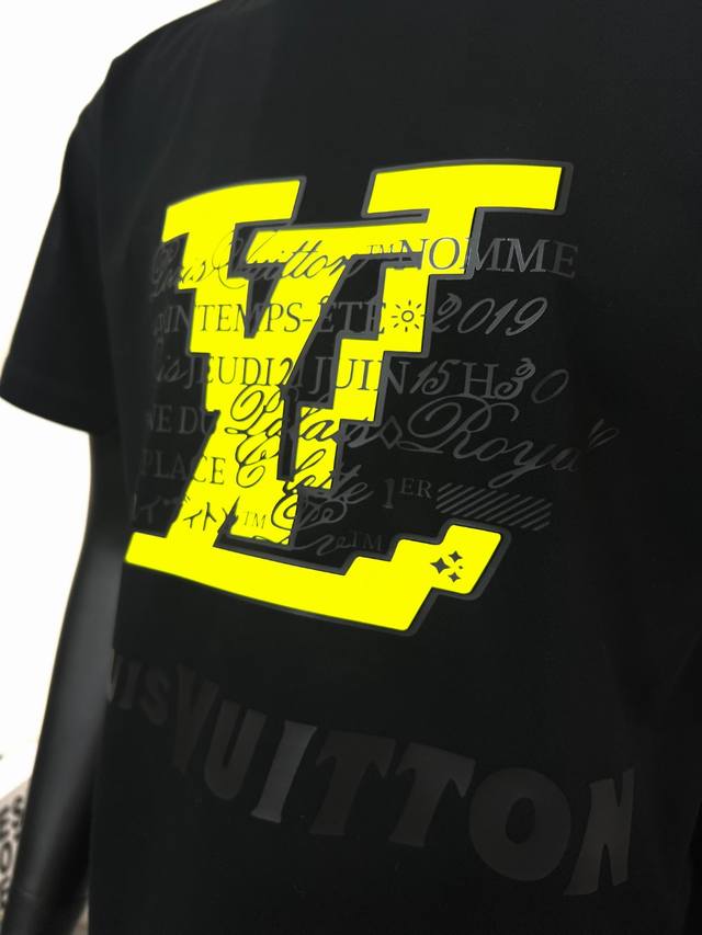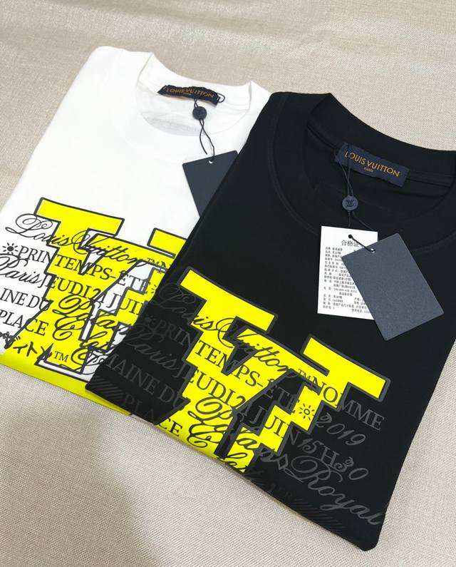Louis Vuitton LV 25Ss New Plastic Artistic Letter Print Short-Sleeve T-Shirt, made of 240G 64-count double-yarn pure cotton fabric; soft and breathable, 300G tightly ribbed neckline, exquisite workmanship with triple-needle stitching, neckline binding tape, simple and stylish printed logo pattern, a must-have style for trendy men; all custom-made original accessories, hangtag, washing instructions, main label, and moisture-proof paper are all included. The fit is an Os loose drop-shoulder style. Unisex, colors: black and white, sizes Xs-L