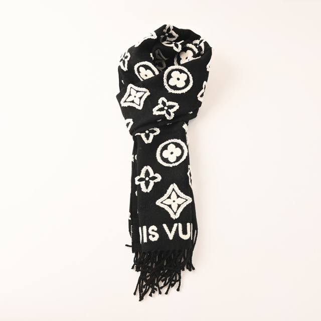 Louis Vuitton Lv 3D Embossed Wool Tassel Long Scarf Ddd New Arrival, 3D Embossed Logo, Super Stylish, Thick and Fluffy, Original Label, Great Fit, Unisex, Easy to Care For, Wool Material, Same Packaging Ddd Size: 32*180 Ddd Lv Scarf DDD