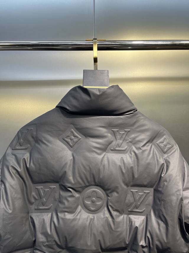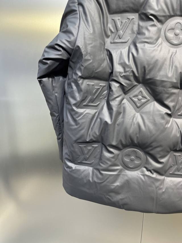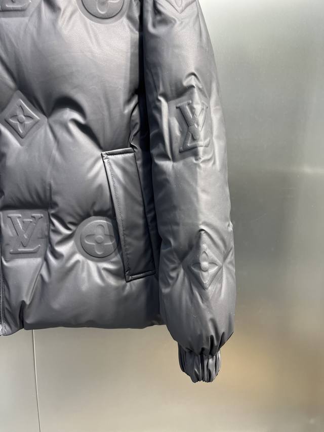 A high-quality Louis Vuitton LV Fall/Winter collection down jacket featuring an embossed logo print. A versatile couple's down jacket