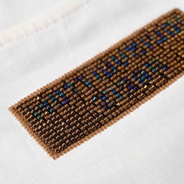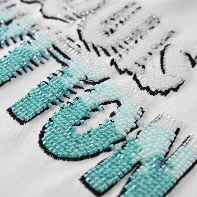 Authentic 6839 purchased and developed, using 32 double yarn fine cotton plain fabric, neckline 1*1 Sorona thread, fabric fermentation washing, imported embroidered beads, customized accessories, loose version