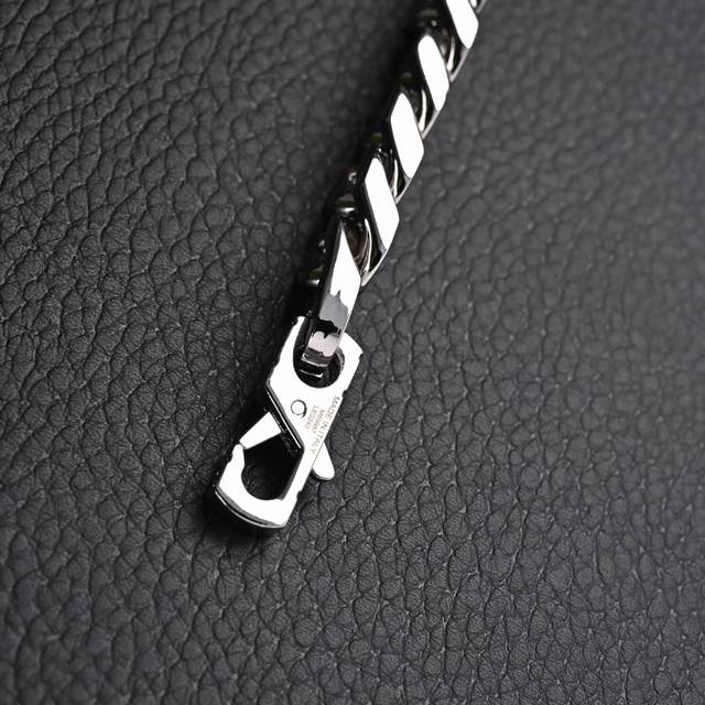 Louis Vuitton LV Chain Links Silver Necklace. This Fall/Winter piece showcases Virgil Abloh's expertise in jewelry. The Chain Links necklace interprets classic style with modern minimalist aesthetics: the meticulously crafted Monogram pattern on the oversized chain creates a contrast between delicacy and boldness, shining even brighter in the silver light. Suitable for gifting or personal use, this bracelet is incredibly high-end. LV necklace.