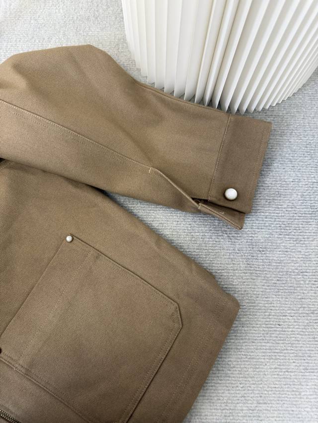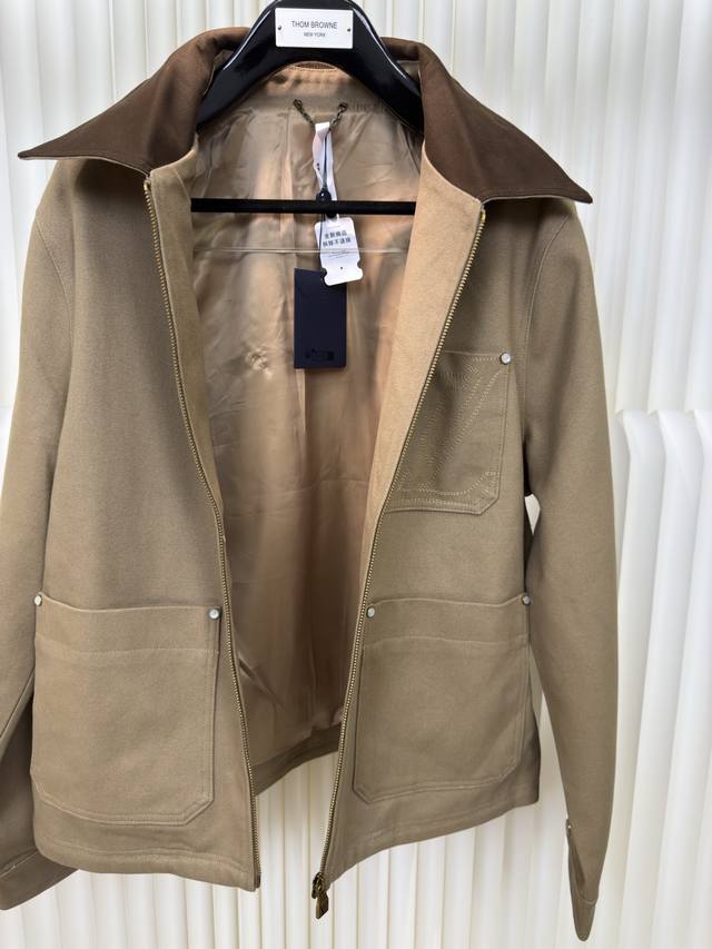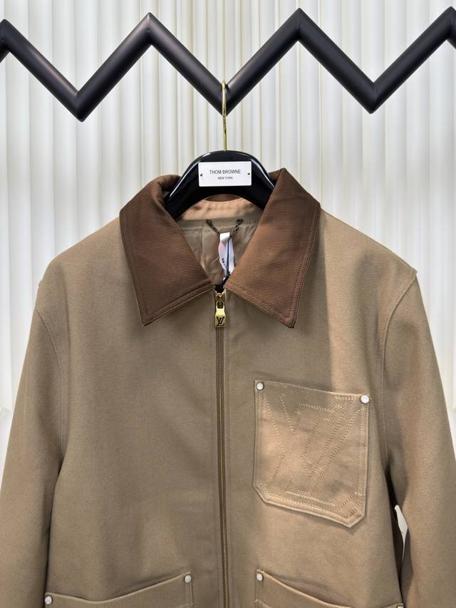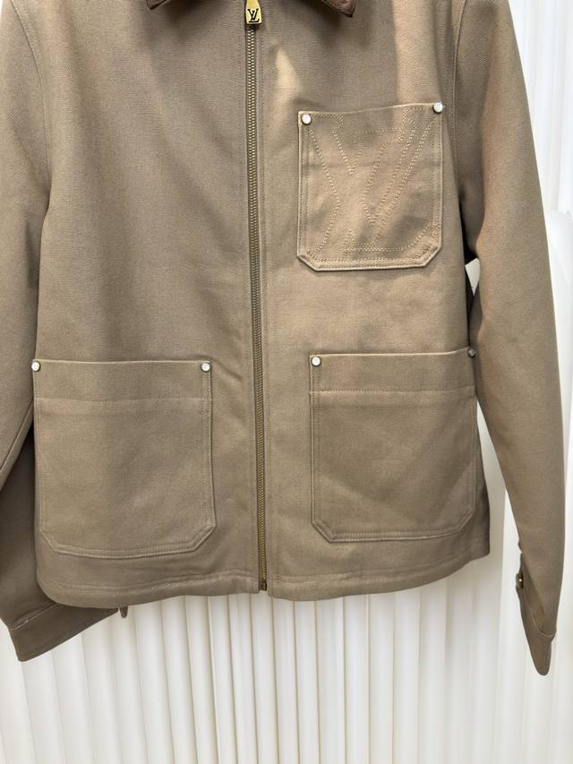 Louis Vuitton LV cotton canvas workwear belted jacket. Authentic product purchased for 22,600 RMB. Custom-dyed 460g Carhartley canvas fabric, custom 280g suede coffee-colored collar, imported embroidery, fermented fabric wash. Custom 1:1 zipper, 1:1 rivets, 1:1 logo. Loose fit. Sizes 46, 48, 50, 52.