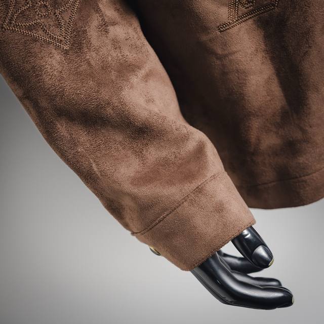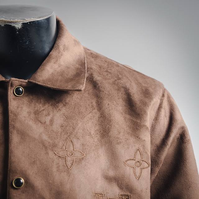 Louis Vuitton LV floral embroidered suede jacket. Purchased from the original for 36,500 RMB. Made with custom French velvet fabric; the dark brown velvet fabric displays different color effects under different lighting. Custom black silk lining. The entire garment has very unique features, with imported machine-made embroidery and matching details on the placket comparable to the original. Custom-made hardware buttons and accessories have a delicate and smooth feel, showcasing an understated yet luxurious design. Double pockets on both sides, a shirt jacket style. Unisex. Size: S-XL 46485052