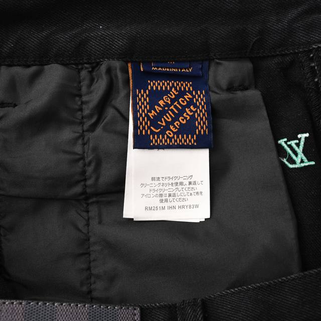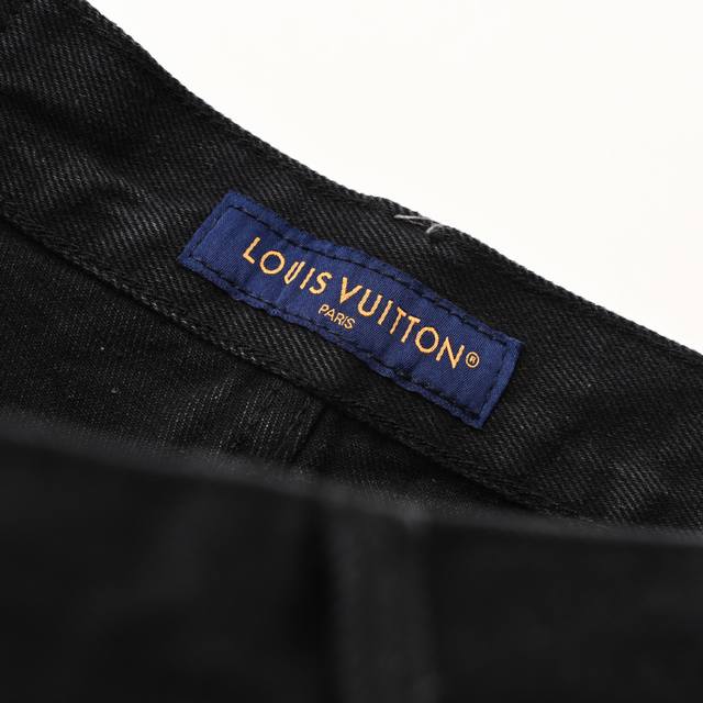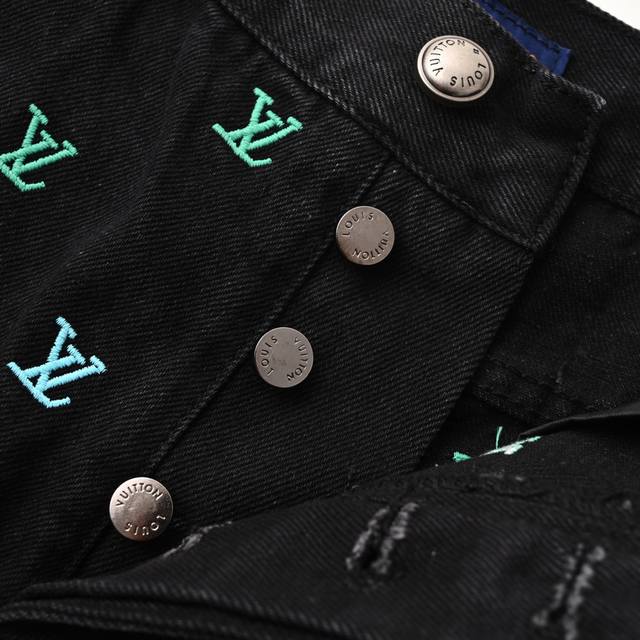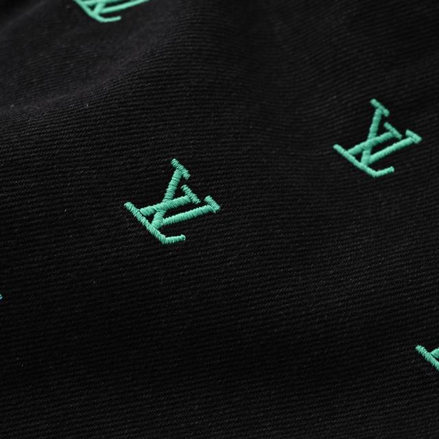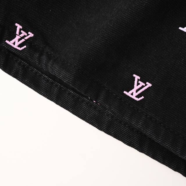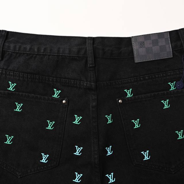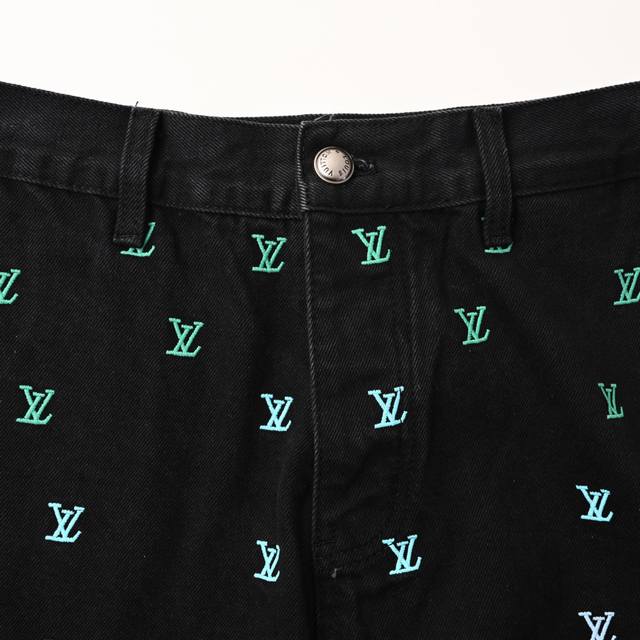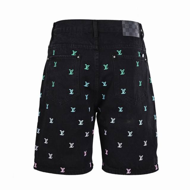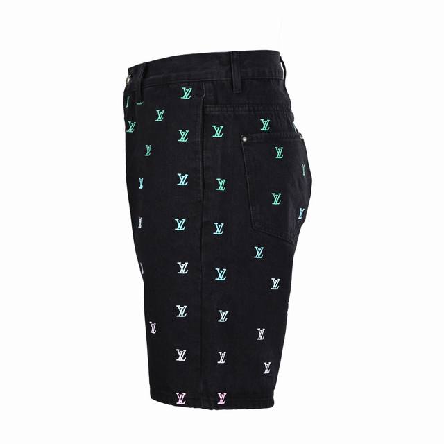 Louis Vuitton LV Gradient Embroidered Denim Shorts (Ddd) are made of washed black denim and feature an all-over LV Blason embroidery pattern with a delicate gradient finish, transitioning from light green to green, blue, and purple. They look great paired with a top, creating a graphic overall look. (Ddd Size: S-XL)