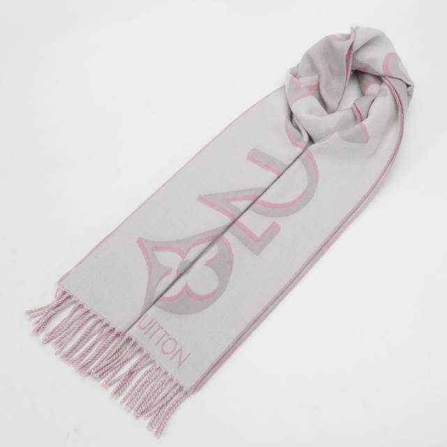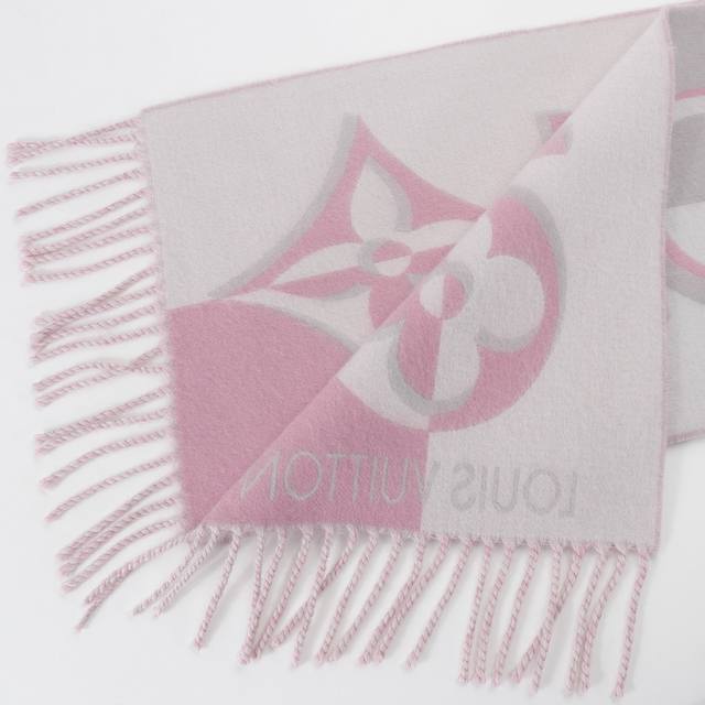Louis Vuitton Lv Grey and Pink Color Block Double-Sided Tassel Long Scarf
