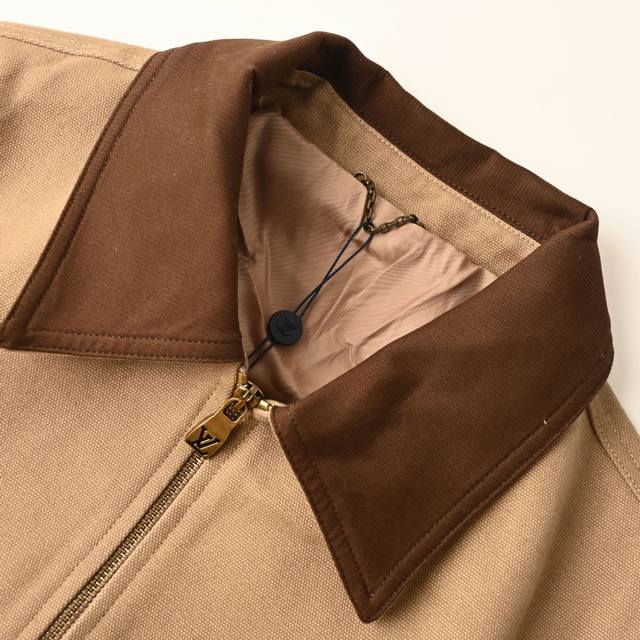 Louis Vuitton LV Khaki Pocket Cotton Canvas Work Jacket with Waistband (Ddd) Custom 1:1 Carhartley Canvas 460g fabric combines the comfort, skin-friendliness, moisture absorption, and breathability of cotton with the durability, crispness, and resistance to deformation of polyester. Employing a Tajima embroidery machine, the fabric is automatically embroidered according to the set pattern and parameters, ensuring precision, delicate and even stitches, and natural patterns. Advanced washing equipment removes surface dye, reducing color fading during wear and washing, effectively improving colorfastness, and relaxing the fabric fibers for a softer and more comfortable feel, enhancing the wearing experience. Fit (Ddd) Sizes: 46 48 50 52 (DDD)