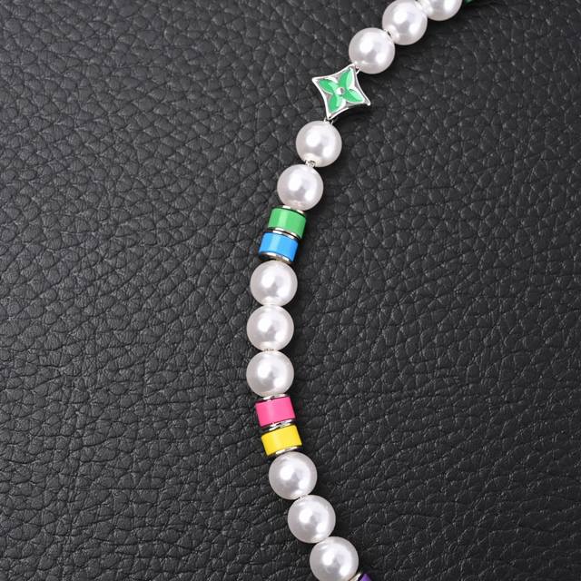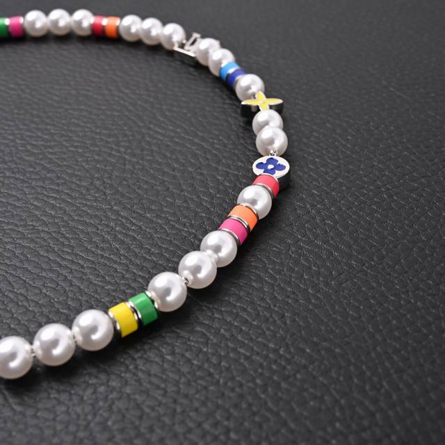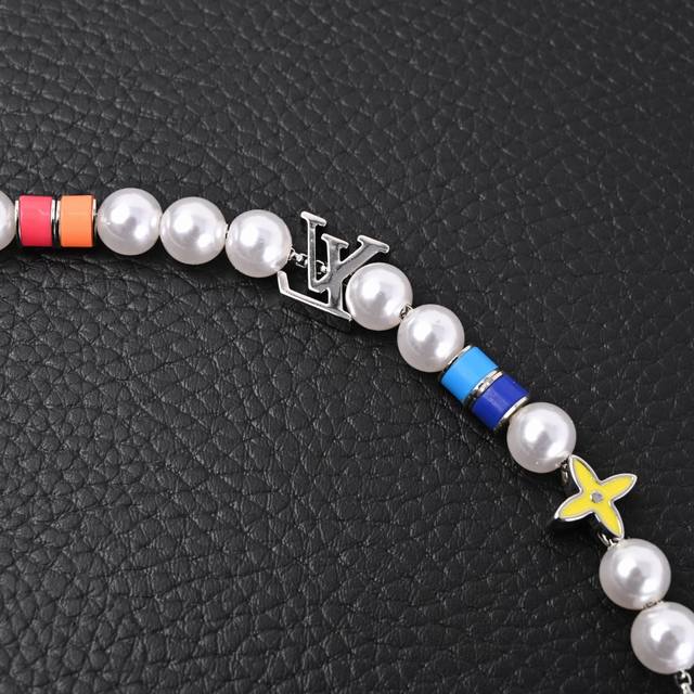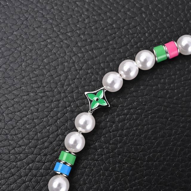 . Priced at P10, 1040 RMB on the official website. The Mng Pearl Party necklace dynamically interprets the brand's elements, using an adjustable chain to string resin beads and vibrant beads, highlighting the colorful Monogram flowers and the Lv lettering. The brushed finish adds a touch of sophisticated elegance. Material: Metal-Resin-Made in Italy!