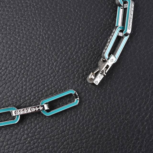 Louis Vuitton Lv Monogram Bamboo Blue Enamel Necklace (