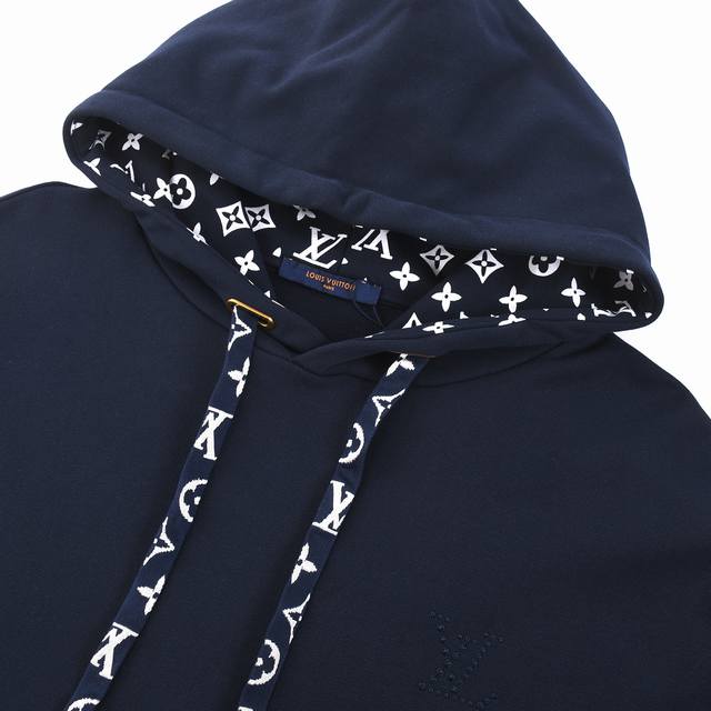 Louis Vuitton Lv monogram hooded sweatshirt with drawstring, purchased for 10969 RMB. Made with luxury brand terry cloth sweatshirt fabric, featuring 1*1 double-yarn stretch heavyweight ribbed knit (480g), fermented fabric wash, high-temperature hot-stamping rhinestones, rubber-printed, custom accessories, loose fit . Size : S-XL.