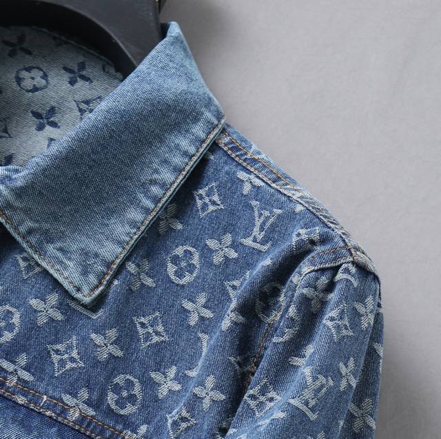Louis Vuitton (LV) official website style, early release! 2025 Spring/Summer new men's denim jacket, original single quality with all three tags, high-end version! Custom-made memory fabric for high breathability and comfort, impeccable details, brand elements and design concepts, reflecting high quality. Delicate and soft to the touch! Casual cut, excellent fit! Sizes: M to 3XL. Please provide your height and weight when ordering.