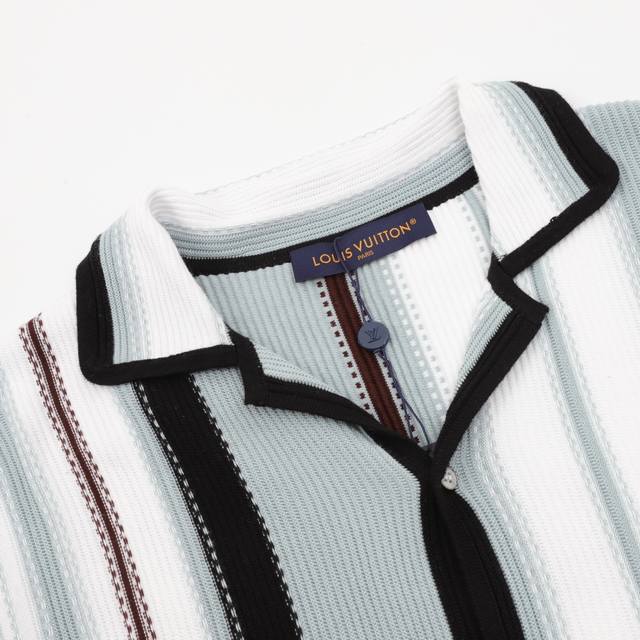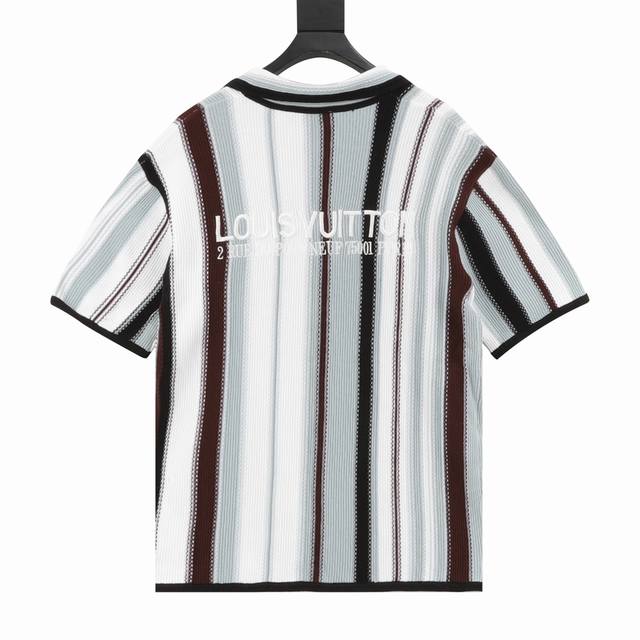 Louis Vuitton Lv vertical striped knitted suit short-sleeved shirt Authentic 159