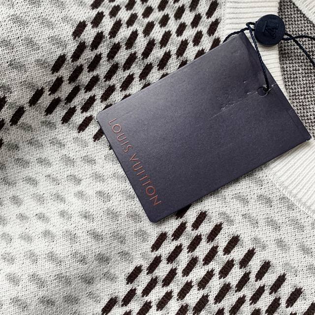 This cotton short-sleeved round neck shirt comes from the spring and summer fashion show, reinterpreting the classic Damier pattern with jacquard knitting technology. The Marque L. Vuitton D