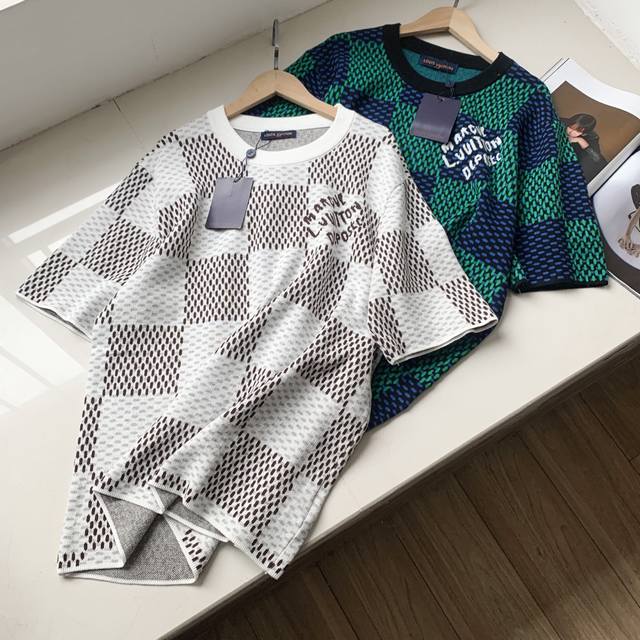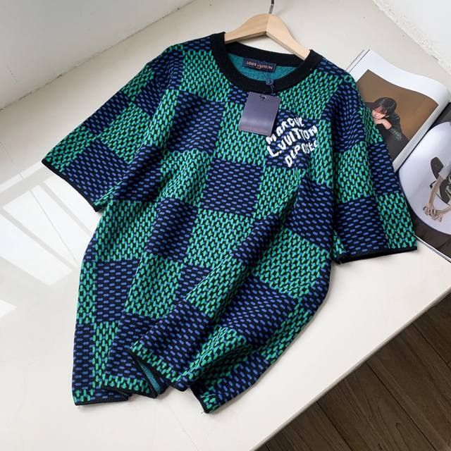 Louis Vuitton Lv25Ss new checkerboard knitted jacquard short-sleeved T-shirt