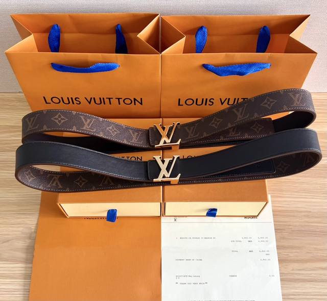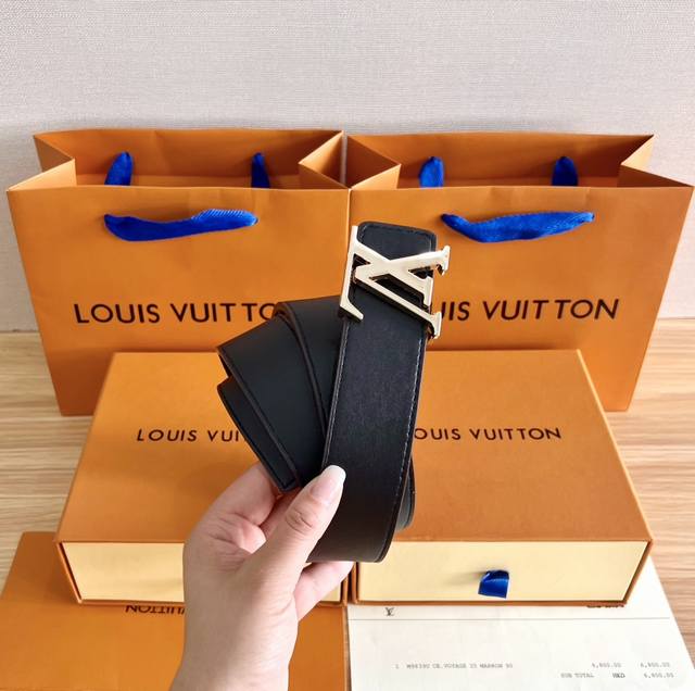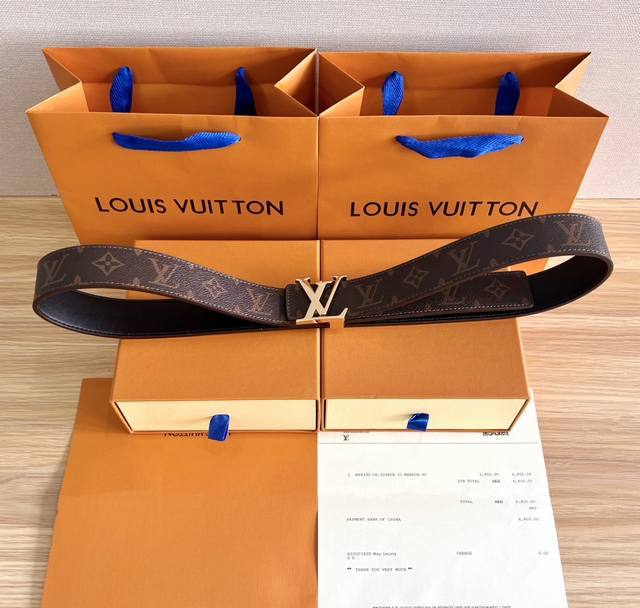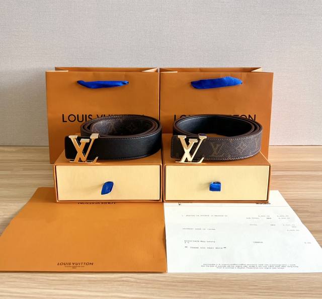 Louis Vuitton men's Lv Initiales double-sided belt with monogram is now on sale at the counter. This Lv Initials double-sided belt is decorated with Monogram canvas and leather on both sides. It is exquisitely crafted, high-end, luxurious, wear-resistant and not easy to crack. The shiny metal Lv Initiales buckle is vacuum-plated without flaws, injecting a modern style into the classic design. It can be matched with any style. Size: With a hole puncher. With: original folding gift box and invoice
