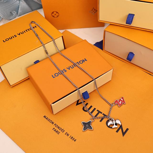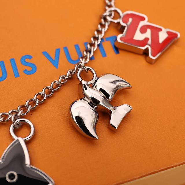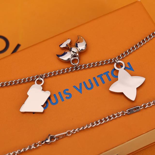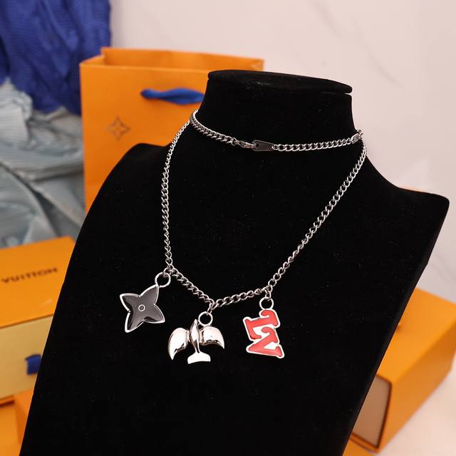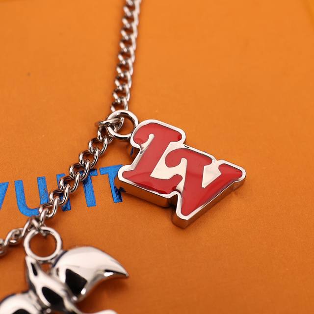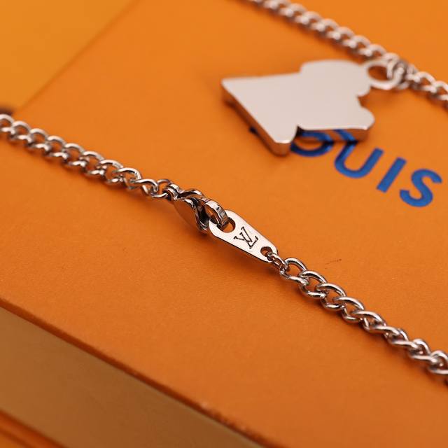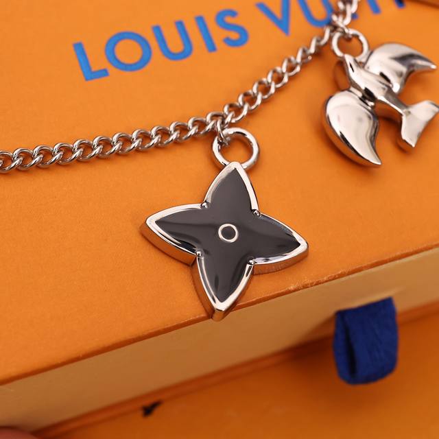 Louis Vuitton Men's Silver Lv Dove Necklace - Code: M00957 - Officially priced at 20,850 RMB! The Lv Dove necklace embodies the brand's spirit of freedom. The dove-shaped embellishment, Lv lettering, and Monogram flower design sway gracefully, while polished metal and bright acetate create a modern and chic look. Features: One size fits all - Metal - Acetate enamel - Lv lettering - Monogram flower - Dove embellishment - Hook closure - Made in Italy! Material: Original ZP titanium steel, colorfast! Included: Complete gift box (as shown).