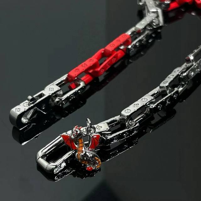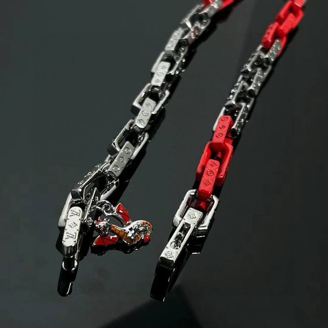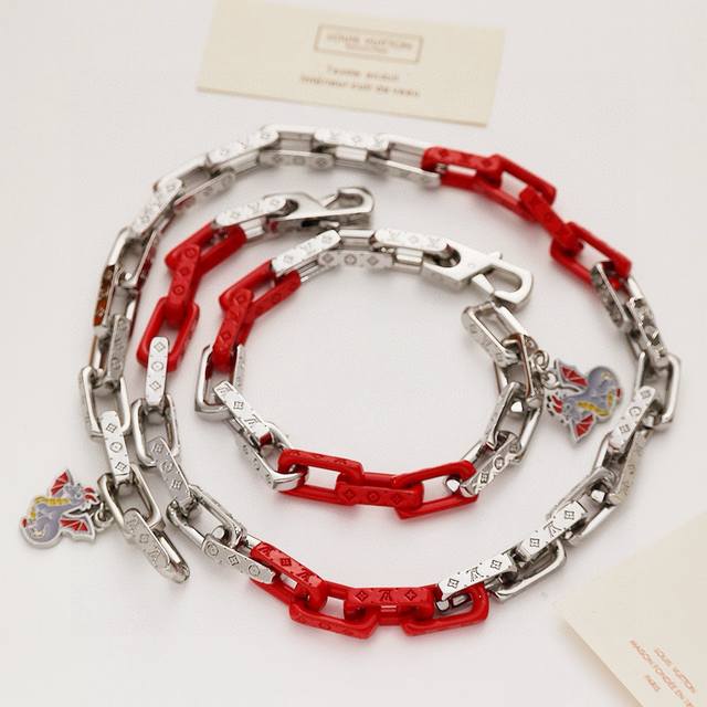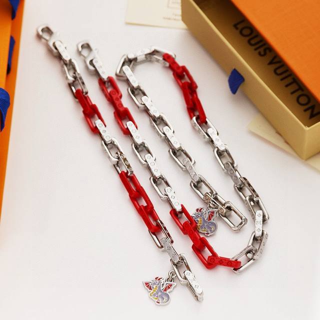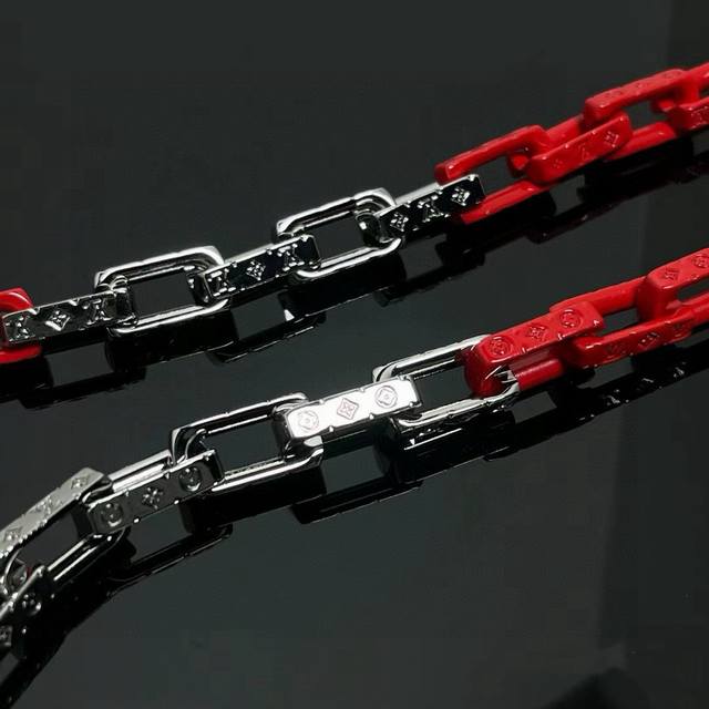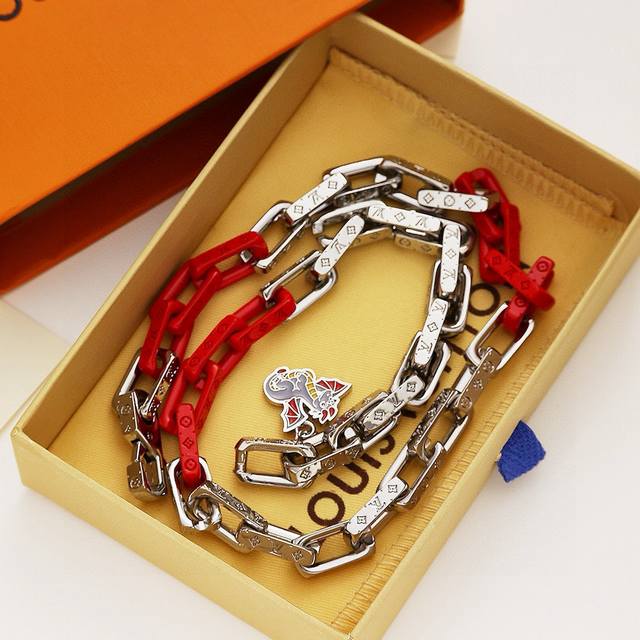 Louis Vuitton Monogram Chain Necklace with Full Packaging. This Monogram Chain necklace features modern touches connecting stainless steel, recycled resin, and acrylic links, with the metal links engraved with the Monogram pattern, showcasing Louis Vuitton's exquisite craftsmanship. The "LV" lettering adds to the brand's style, making it a perfect match for the matching bracelet. Stainless Steel, Resin, Acrylic, Engraved Logo, Made in Italy, Chain Length: 55cm.