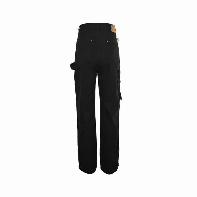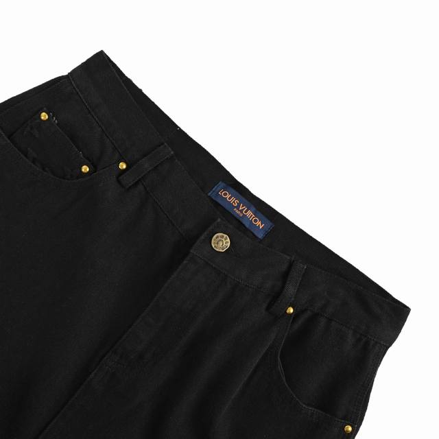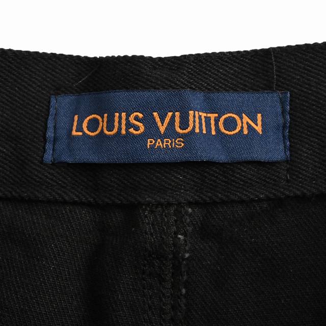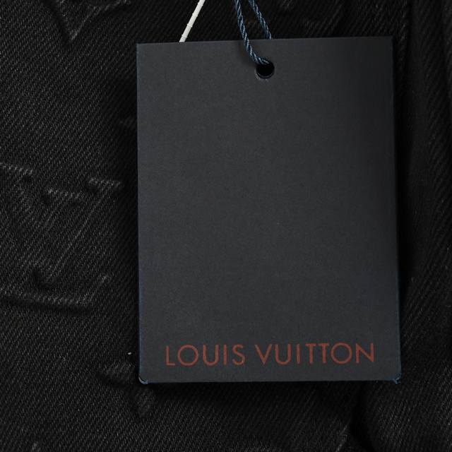 Louis Vuitton Monogram Embossed Washed Jeans. Made with 18-ounce semi-bleached denim fabric, desized, and steamed at high temperature for fading. Features 3D special molding for the Monogram pattern. Two sets of aluminum foil are used for high-temperature pressing, and each pattern is manually filled with vinyl to prevent dents. Laser-cut positioning. Custom-made zippers and hardware. Original label, wash tag, and moisture-proof paper packaging. Colors: Blue, Black. Sizes: S-XL.