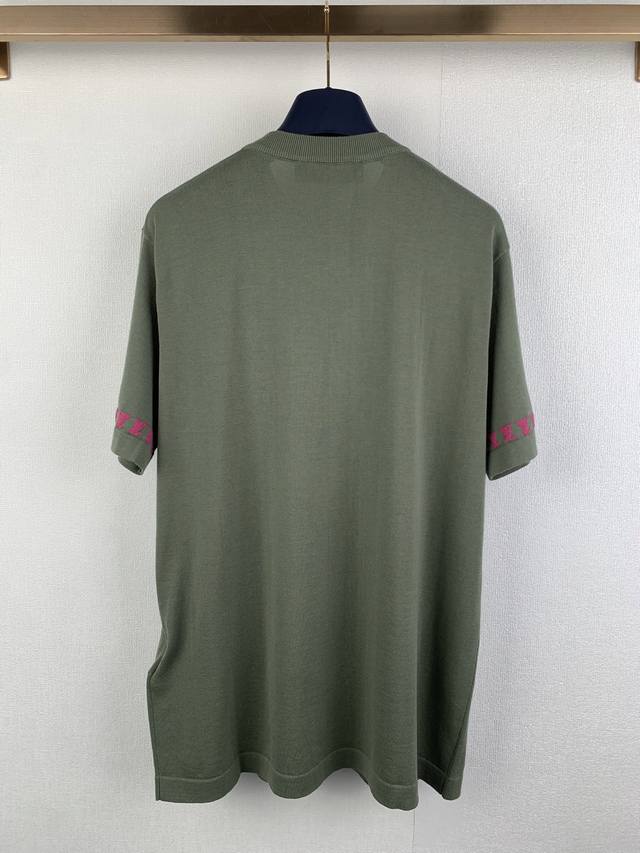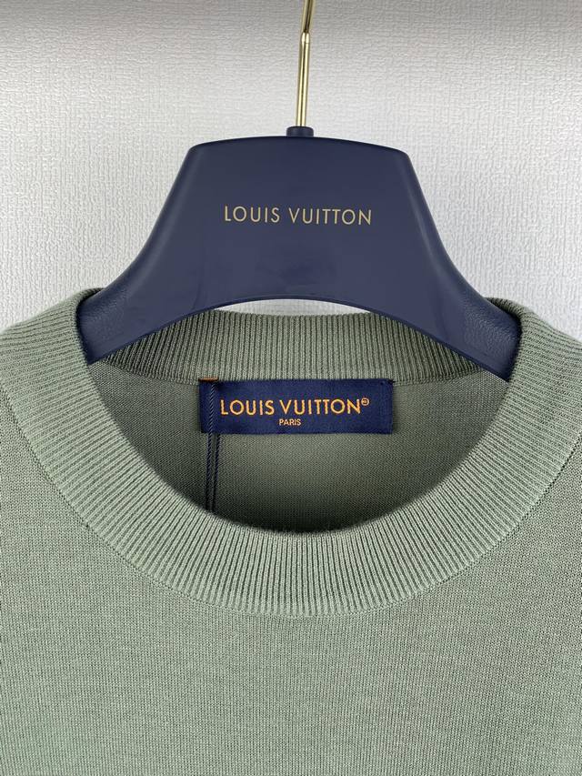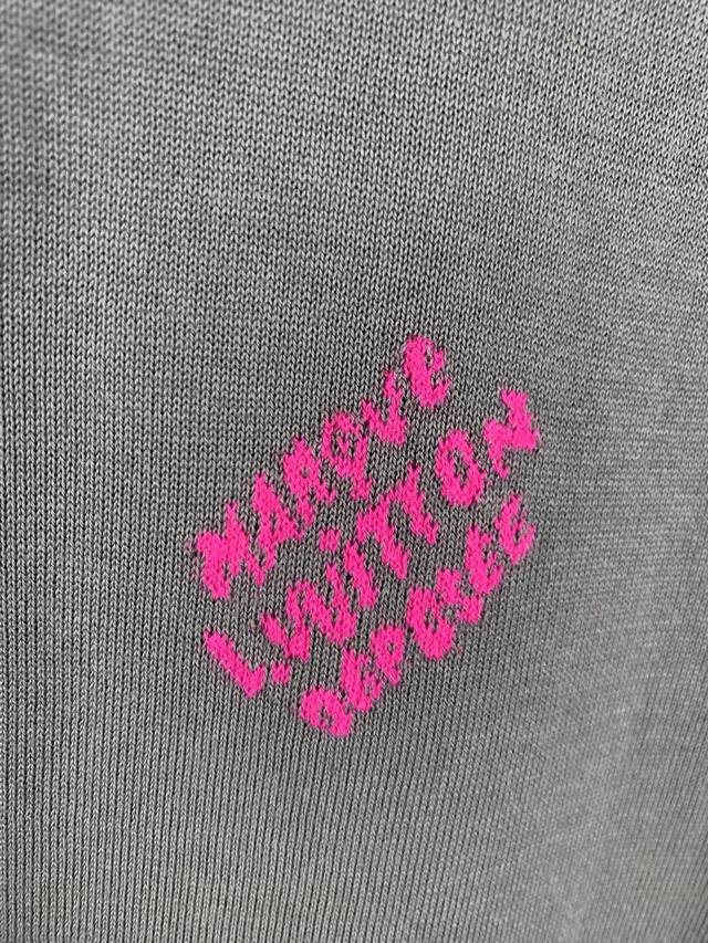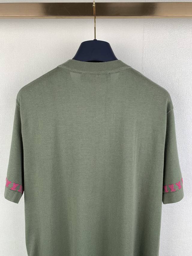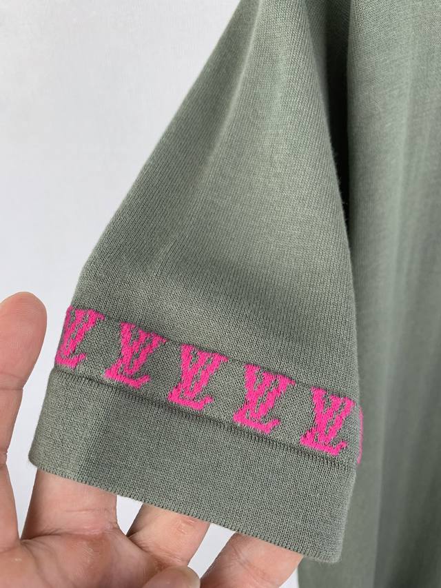 Louis Vuitton Monogram Jacquard Knit Short-Sleeve T-Shirt. The pattern is made with 80-count double-ply Siro yarn, a high-quality yarn that ensures a smooth, soft, and burr-free finish. The pattern is hand-counted one-to-one, and the double-ply knitting is done using an imported 32-needle, 16-ply knitting machine with a partial jacquard weave technique. The 16-needle stitches are tighter, resulting in a finer texture. It features a 22-needle ultra-fine stitching process, a gentle wash, and is ironed for shaping. Size: Xs-L.
