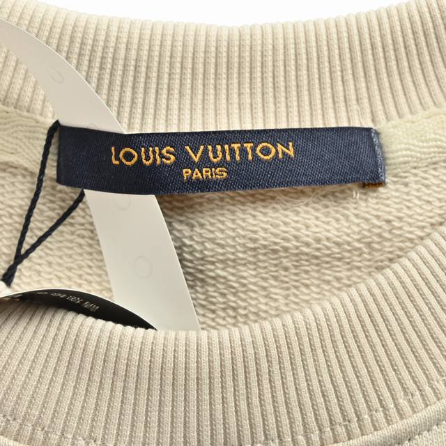 Louis Vuitton Monogram Leather Label Crew Neck Sweatshirt (Ddd Autumn/Winter Exclusive), unisex monogram leather label sweatshirt. Blurring gender lines with a neutral style, the classic drop-shoulder, loose-fitting Os silhouette makes it perfect for the "no pants" look on women! The solid black and white color scheme looks great with any pants, effortlessly chic! Made from a custom-supplied terry cotton knit fabric, 400g, grade 4 environmentally friendly dyed fabric, with the neckline, hem, and sleeves all dyed in the same batch for color consistency. Custom-made vintage monogram leather label on the chest. Logo leather pocket design! Interpreting Louis's iconic elements, truly a universally loved item. Super soft and resilient, this is a classic Louis Vuitton monogram sweatshirt released every year, with a three-dimensional logo that presents a unique texture, clean and crisp. This is Louis Vuitton's signature craftsmanship and the latest technology this season. The level of detail is top-notch, and the three-dimensional tailoring is exceptional. A fusion of luxury and style! Unisex color: Black/Apricot. Size: SL.