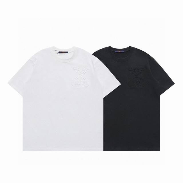 New summer style chest embossed letter round neck short-sleeved T-shirt, high-end quality using custom-woven and dyed high-weight fabrics, washed up to 280G pure cotton fabrics, the thread is increased to 2.7 without deformation, loose Oversize version, the same style for men and women