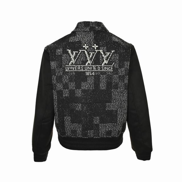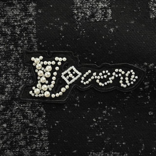 Louis Vuitton Pharrell Collection Pearl Rhinestone Mosaic Baseball Jacket Ddd LV's new baseball belted jacket features a pearl-embellished tweed body subtly woven with the Damoflage pattern from the Spring/Summer 2025 fashion show, creating a striking look with its elegant cut. Rhinestone and resin beads illuminate the logo appliqu