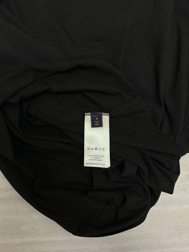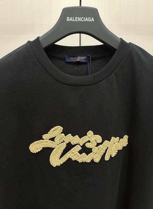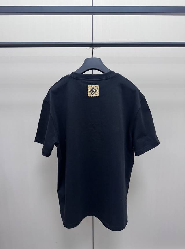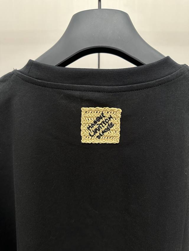 The fabric is made of 32 double yarn combed cotton, Xinjiang small cotton woven version thread with 1*1 Sorona, and the same vat is matched with custom dyeing. The embroidery uses the original raffia embroidery icon of the same color, and there is embroidery on the front and back. This T-shirt is a lightweight cotton knit with a raffia effect logo, which makes the classic silhouette glow with an artistic atmosphere. The logo embroidery and Marque L.Vuitton D