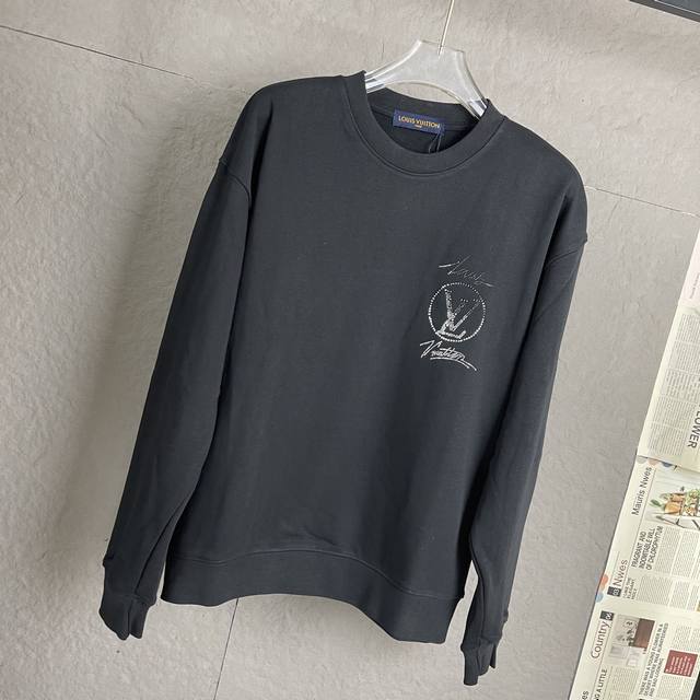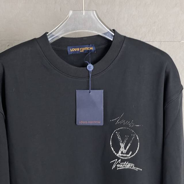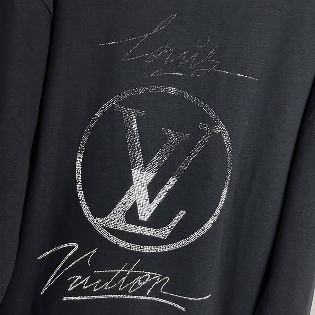 Louis Vuitton Rhinestone Crew Neck Sweatshirt. High-weight ribbed neckline and cuffs, custom-woven and dyed 380g fabric. Super eye-catching, super stylish, super sophisticated. Unisex style. Colors: Black and White. Sizes: S-XL.