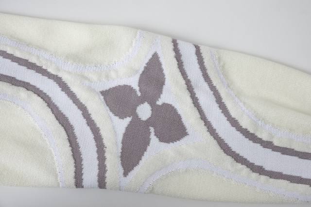 Louis Vuitton Ski Sleeve Floral Knit Sweater (Ddd) Craftsmanship: Made from a technical sheep-wool blend, this lightweight and warm sweater is suitable for skiing or everyday casual wear. The sleeves and sides feature a flowing intarsia logo pattern, while the elbows are adorned with a large Monogram flower, showcasing meticulous attention to detail. An embroidered Louis Vuitton patch on the chest highlights the brand identity. The sweater features a relaxed, dropped shoulder design with a round neck and ribbed edges. Ribbed details on the collar, cuffs, and hem enhance comfort and style. This sweater balances functionality and fashion, suitable for wearing alone for a sporty look or as a warm inner layer for light outdoor activities. (Ddd) Sizes: Xs, S, M, L, DDD