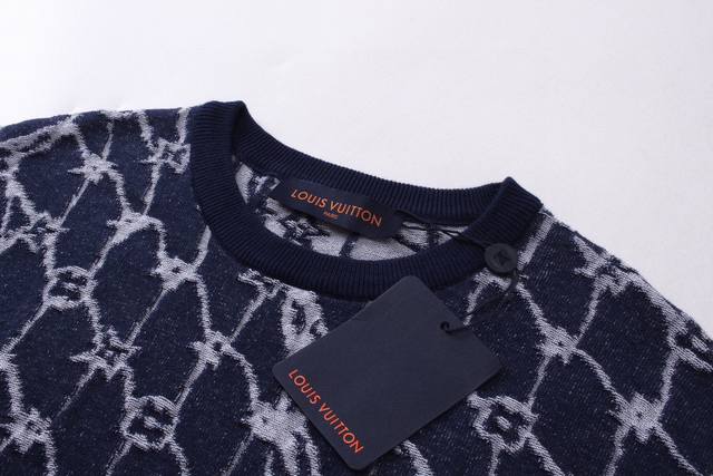 Louis Vuitton Summer new sailing fishnet jacquard knitted round neck short sleev