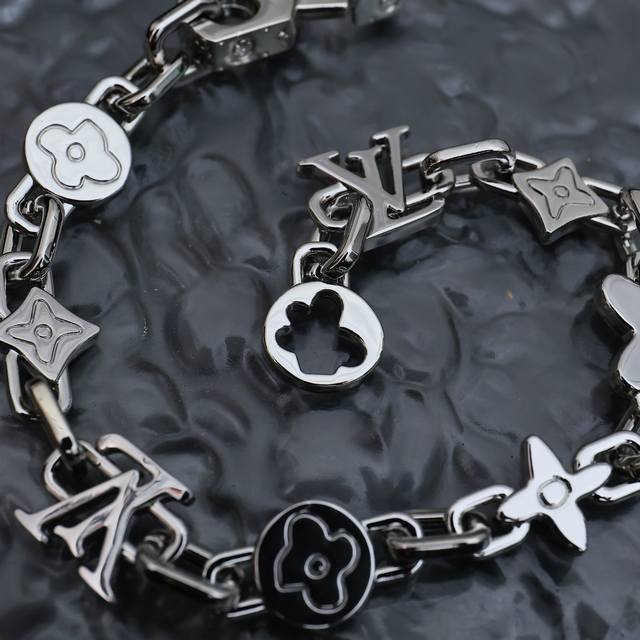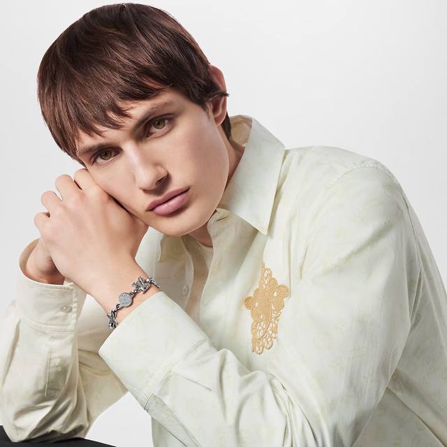 Louis Vuitton Xtyler floral metal bracelet, the same silver alloy as Wang Hedi! Monogram Craggy Bracelet - Code: M1596M, new for the season - priced at 20,1060 RMB on the official website. Part of the Louis Vuitton and Tyler collaboration, the Monogram Craggy bracelet features the Louis Vuitton logo and seasonal daisies in lustrous brass, playfully capturing the dandy trend's inspiration. Pairs well with the matching necklace and belt chain. Brass hardware - Made in Italy!