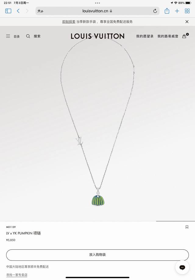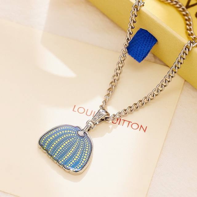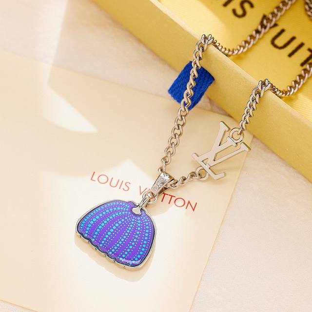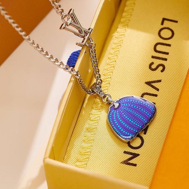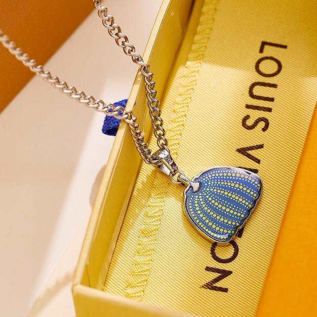 Louis Vuitton Yayoi Kusama Pumpkin Necklace with Full Packaging. Louis Vuitton and Yayoi Kusama collaborate again. The LV x Yk Pumpkin metal necklace features a pumpkin-shaped decoration and the letter 'LV' suspended from an adjustable chain, echoing the classic imagery that the renowned Japanese artist has repeatedly deconstructed throughout her career. Detailed Features: Chain Length 65cm, Three-section Adjustable, Metal, 'LV' Letter Decoration, Pumpkin-shaped Decoration, Colors: Blue, Purple, Yellow.