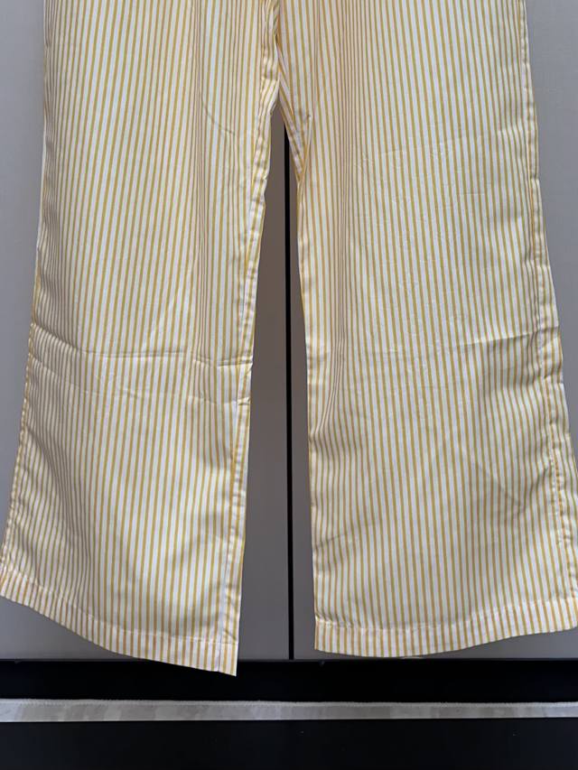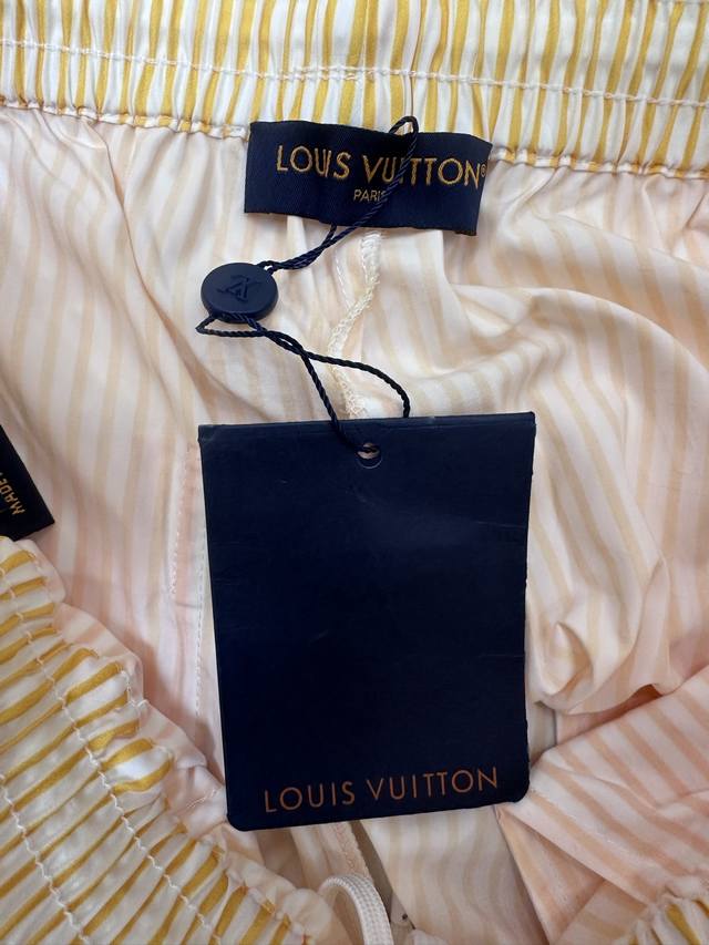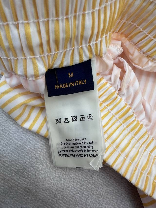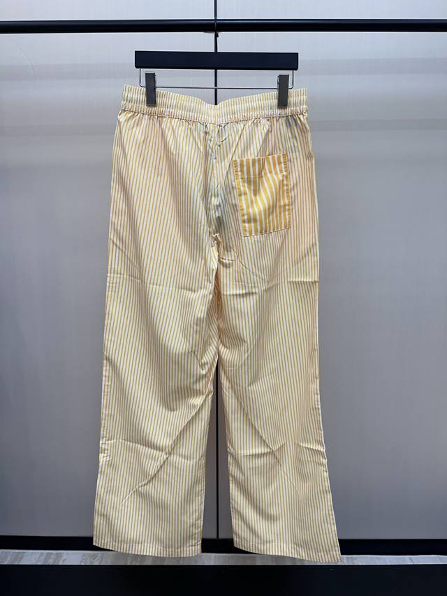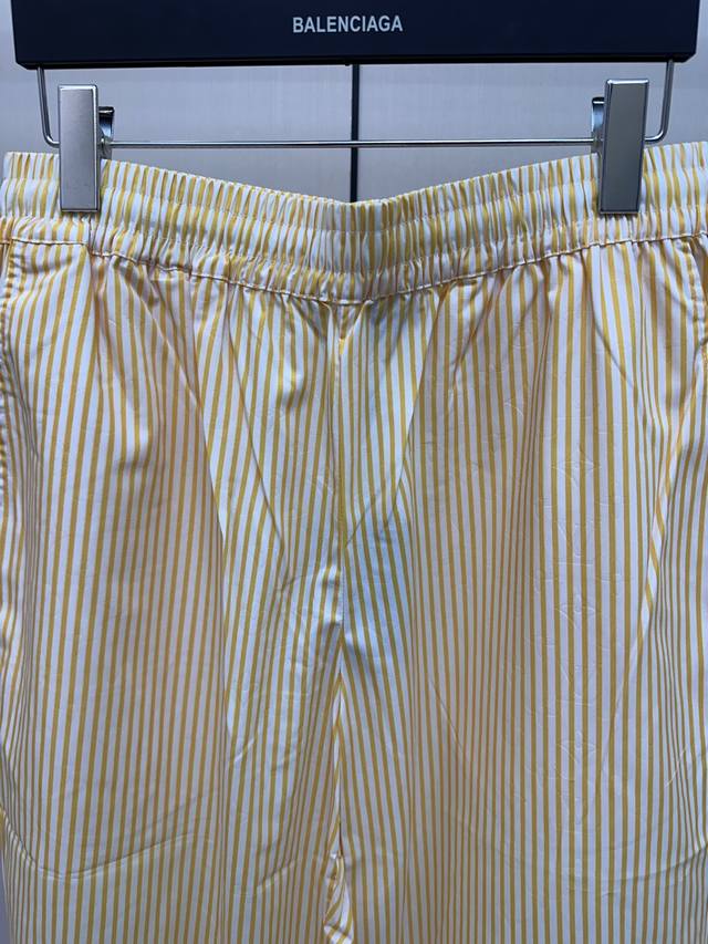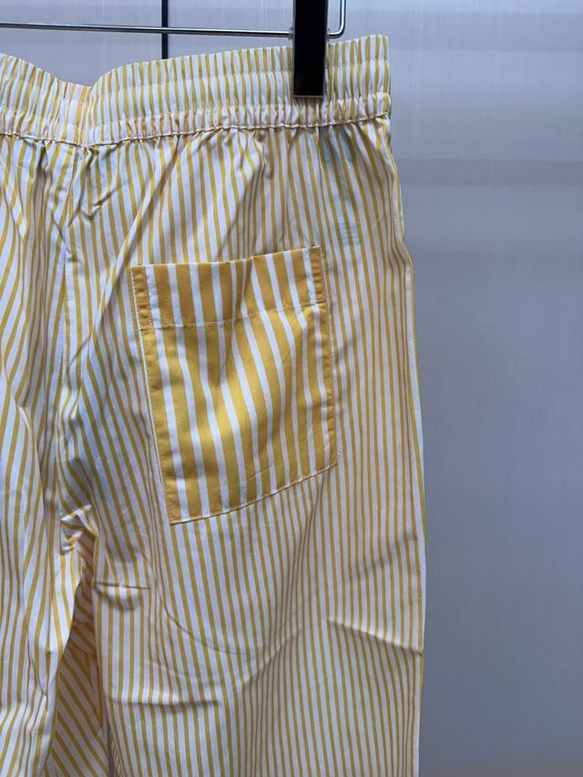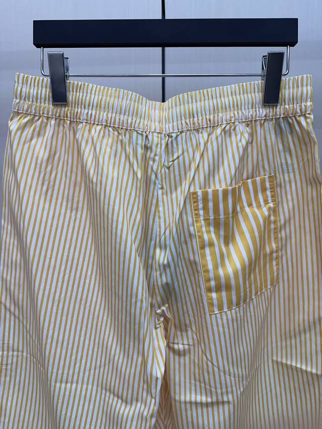 All-over Monogram pattern with fresh stripes Back pockets Wide striped patch pockets Elastic waist drawstring waist Straight waist slightly loose fit