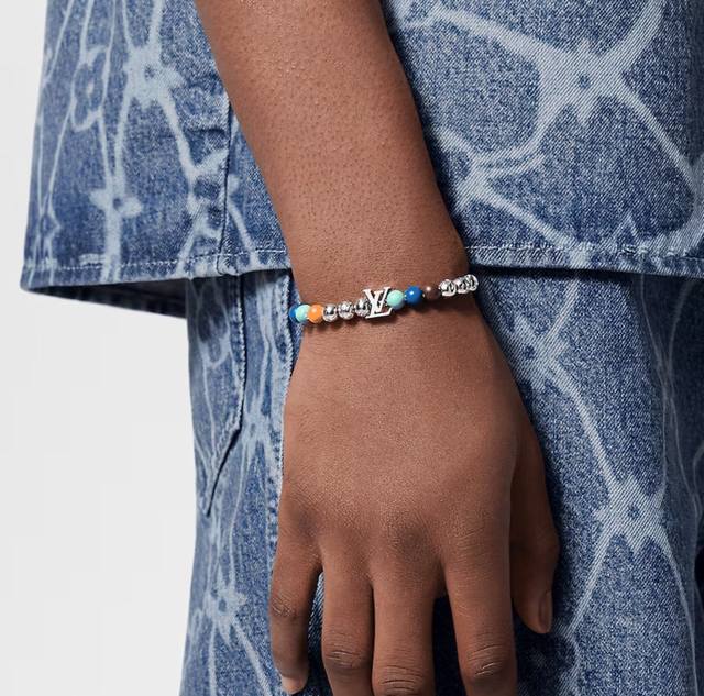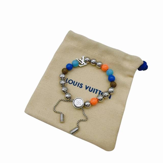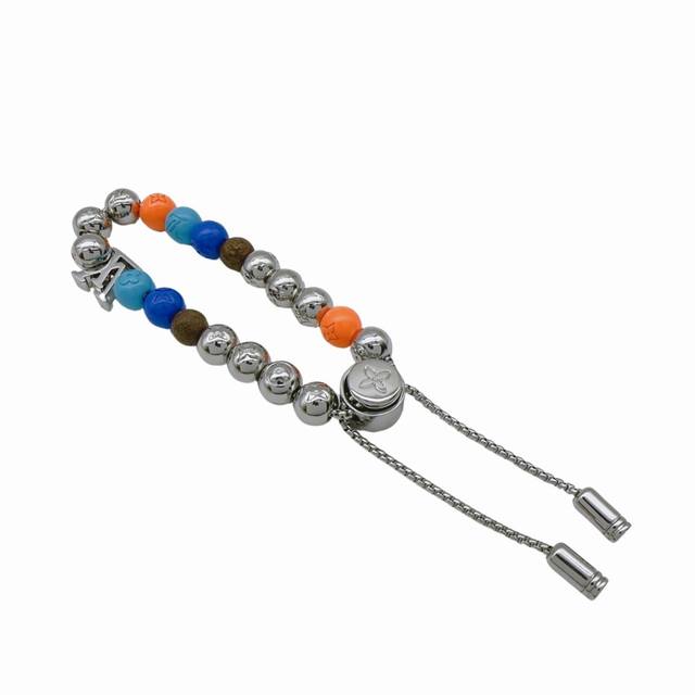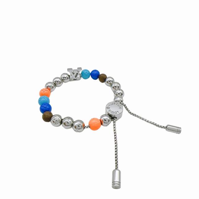 Louis Vuitton-Avant-garde fashion high-end bracelet-rainbow color + mahogany color + silver! New rainbow splicing beads, high-value fashion trend new style, Lv Beads bracelet-code: M0936A-official website price metal-resin-engraved Lv letters-adjustable