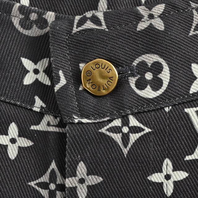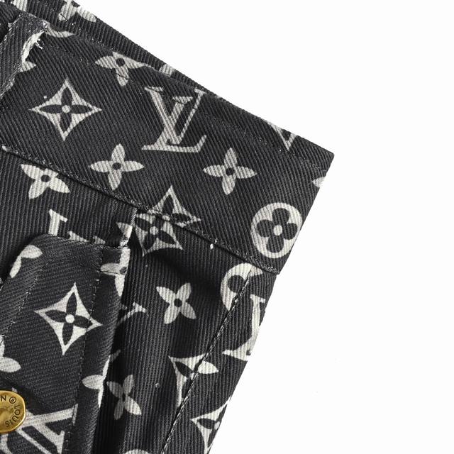 Louis Vuitton's allover Monogram jeans deconstruct denim workwear with a dynamic, sporty silhouette. The zippered hood cinches high on the collar, and the jeans feature slanted front patch pockets and an elastic hem. Silicone Monogram embossing on the yoke, pockets, and sleeves conveys the brand's signature style. Stars and influencers are all wearing these jeans! This year's hottest style! Limited to 500 pieces for the first order, this is a must-have! Sizes: Xs-L