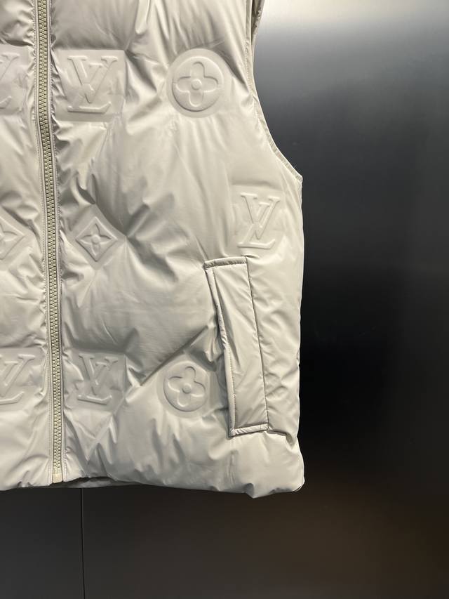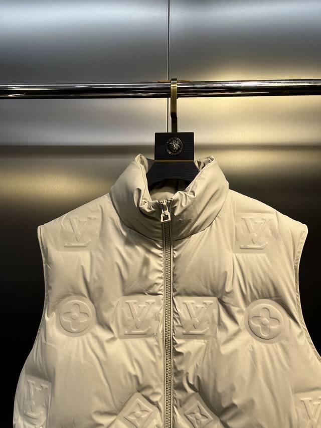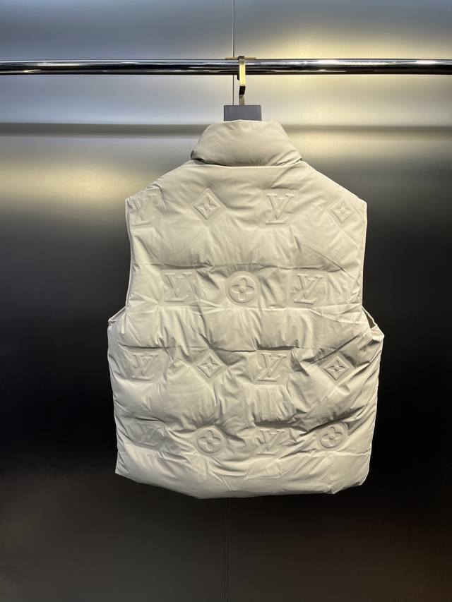 Louis Vuitton's classic and timeless short down vest system. A versatile piece suitable for various lifestyle occasions, this leather down vest is a highly recommended purchase. High-standard tailoring and design. Its strong recognizability reflects a uniquely luxurious and tasteful style. Featuring the classic logo embossed element, it's sure to make you stand out wherever you go. Suitable for both men and women, it exudes confidence and style. The cut is both gentle and powerful, showcasing a fashionable and uniquely futuristic design. The inner lining is filled with 90% imported European standard environmentally friendly white duck down. High loft and excellent resilience, it's comfortable and pressure-free to wear. The down-locking design prevents down leakage and feathers, ensuring wind and cold protection while maintaining style and comfort! Colors: Black, Apricot. Sizes: 48-50-52-54-56, M-3XL.