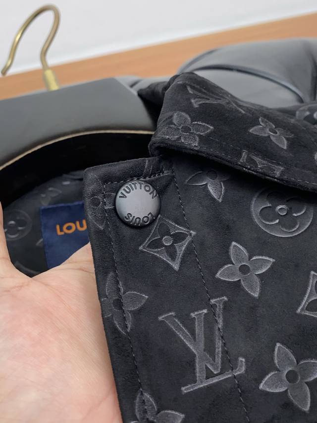 Louis Vuitton's latest lapel jacket, released simultaneously with boutique styles. Made with custom deerskin fabric, featuring custom-designed brand elements, including an all-over embossed logo that is extremely eye-catching. The craftsmanship is intricate and meticulous, using original factory hardware and accessories. All components are top-tier custom-made, resulting in a flawless fit. A must-have for trendy men! Sizes: M-3XL