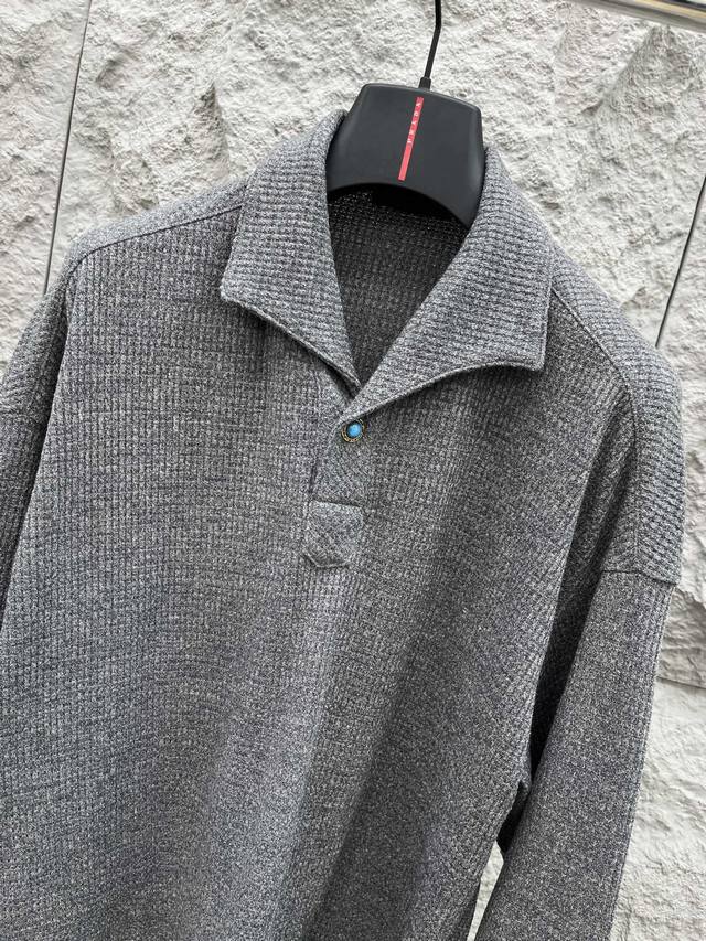 Louis Vuitton's new autumn long-sleeved shirt features a delicate textured fabric and a loose, straight cut. Comfortable and flattering for all body types, it can be worn alone or layered. The clean, seamless back design creates a strong sense of minimalism and sophistication. The grey tones and knit material exude a vintage style, understated yet tasteful. A classic piece that will never go out of fashion and can be a wardrobe staple! Sizes: M, L, XL, DDD