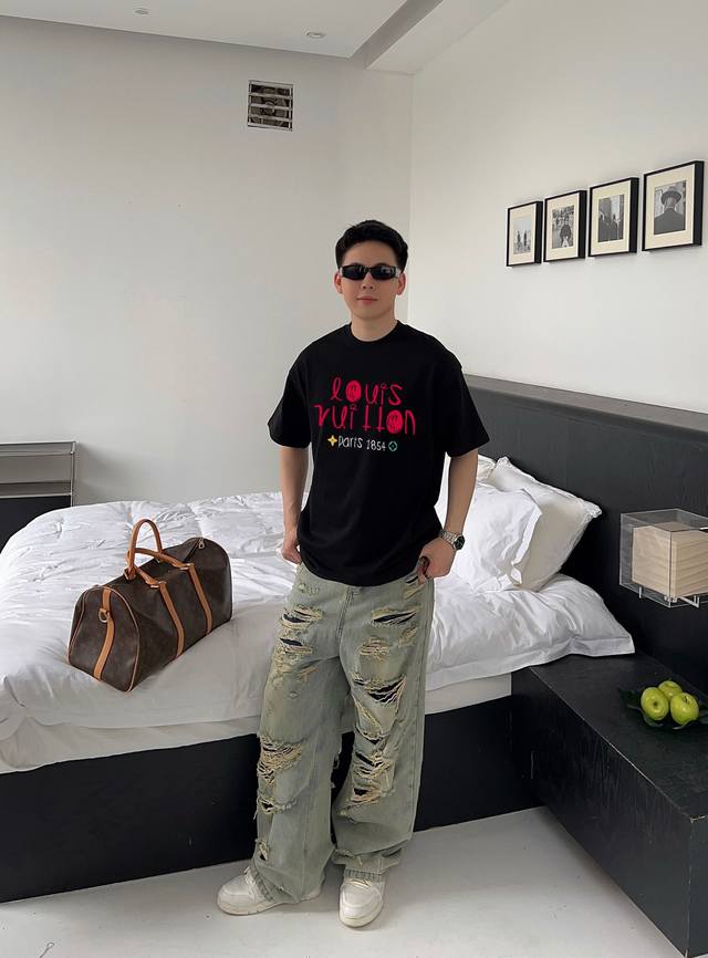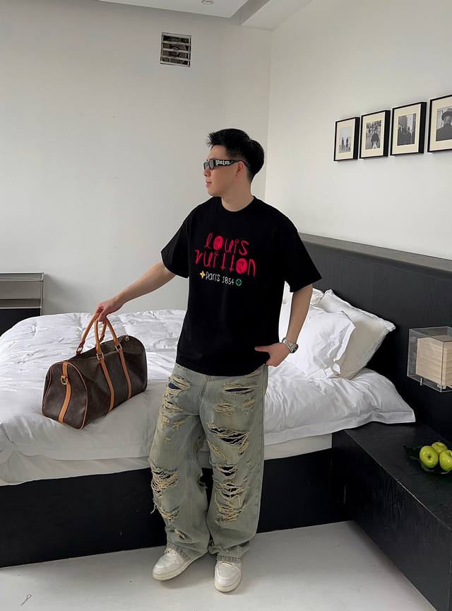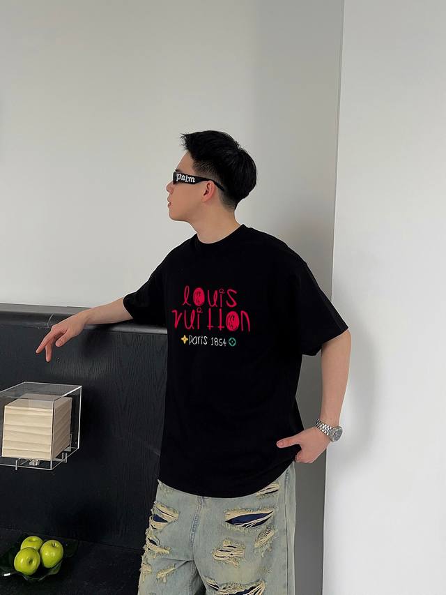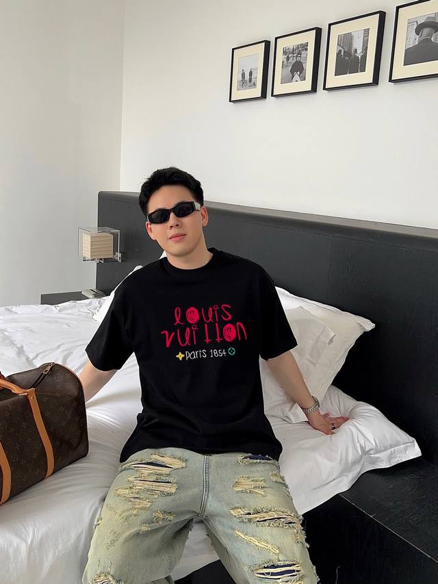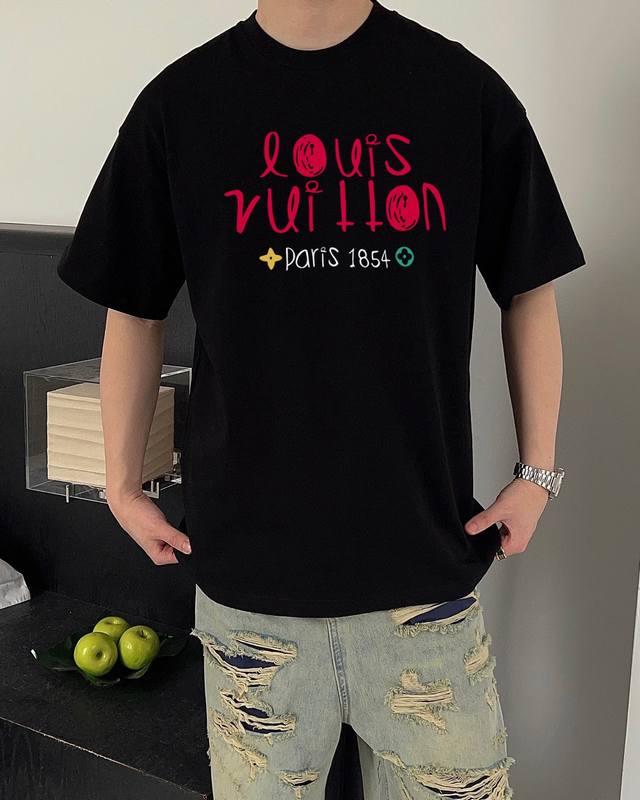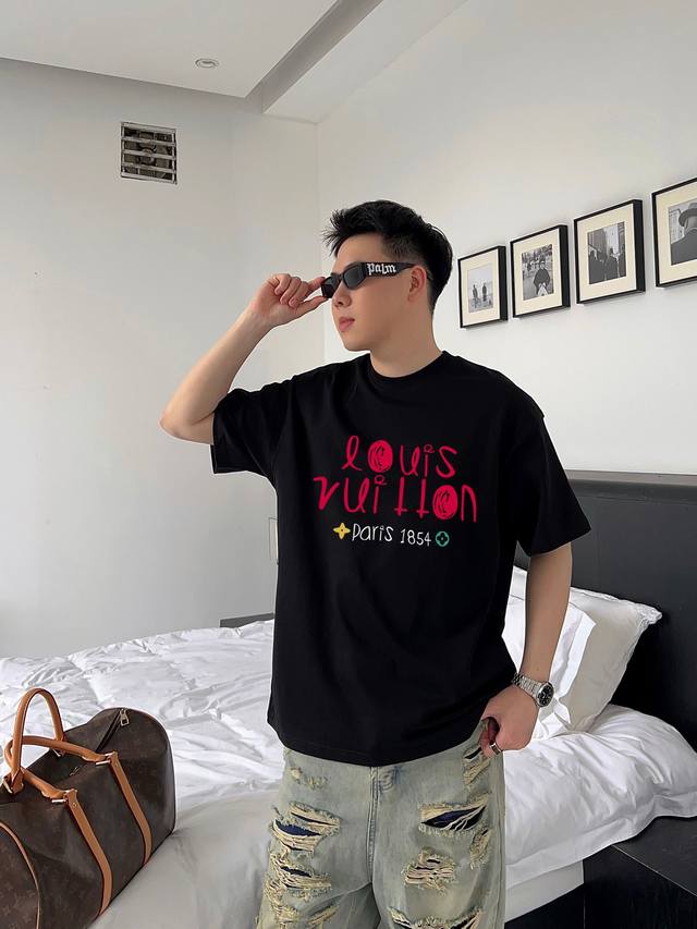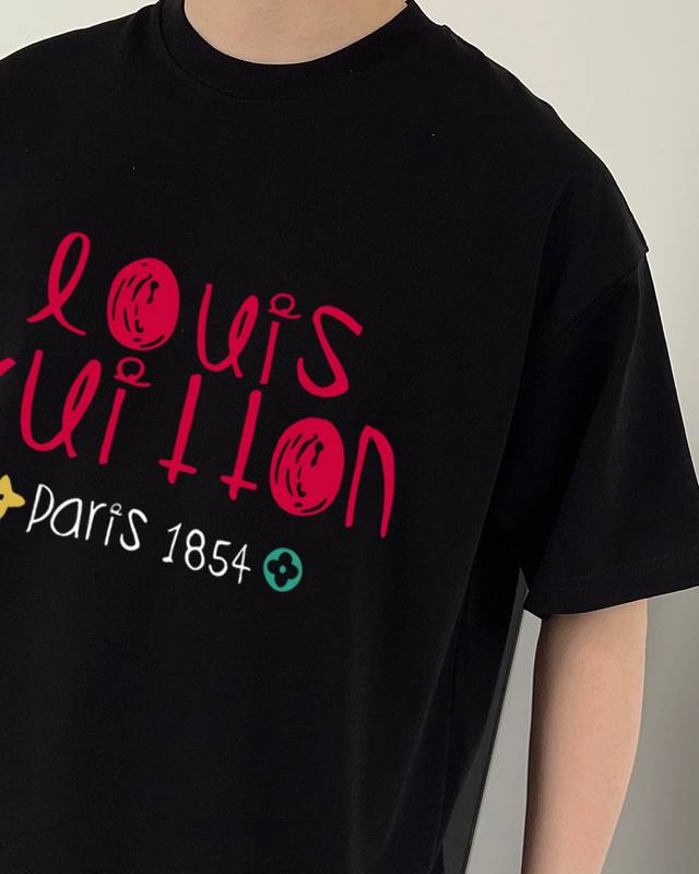 Louis Vuitton's new letter print double-layer heavy-duty short-sleeved T-shirt. The letter pattern is a must-have item every year, whether it's a T-shirt or a sweatshirt. The large-area print on the front uses a high-cost direct-to-garment digital printing machine. After multiple adjustments and pattern making, the color reproduction of the pattern is close to 99% of the original. This is a significant improvement over the inferior offset printing versions on the market, which are extremely time-consuming. The fabric is exclusively custom-dyed 280g double-ply cotton. Sizes: M (100-140 lbs), L (140-155 lbs), XL (160-175 lbs), XXL (175-185 lbs), XLXL (185-210 lbs). Available in black and white. Sizes: 200 lbs fits, 182cm, 165 lbs fits XL (loose fit).